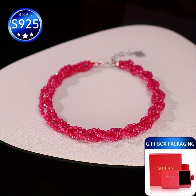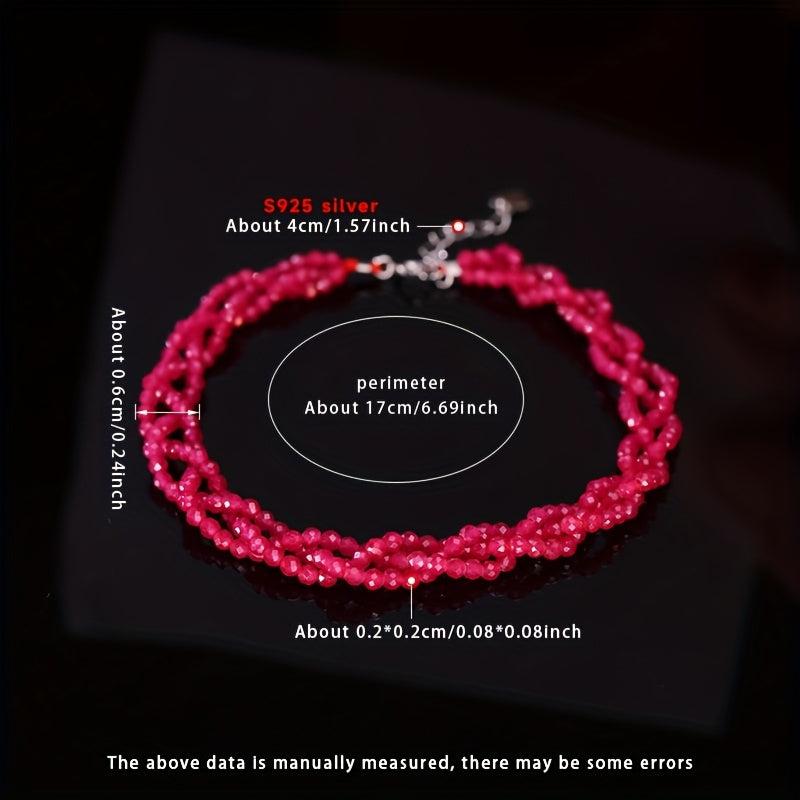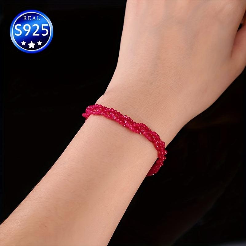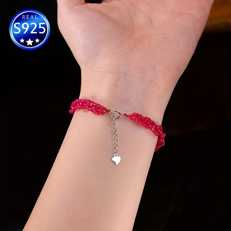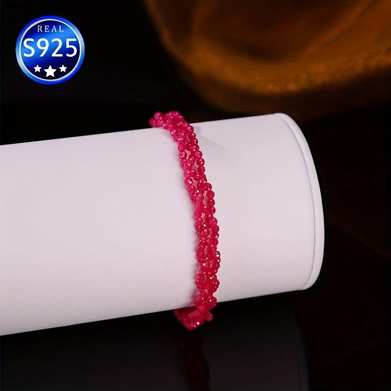 Add a touch of elegance to your everyday style with this S925 silver bracelet featuring a stunning rose red synthetic gemstone. Perfect for date nights and also makes a great gift.