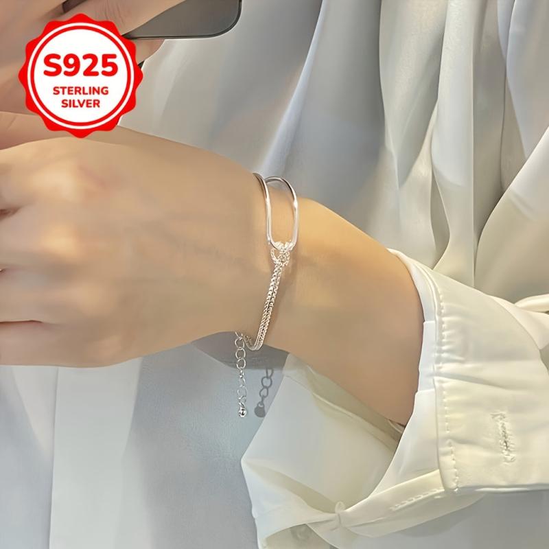 This unique asymmetrical chain bracelet is a fashionable and elegant piece of jewelry. It is perfect for daily wear or special occasions.