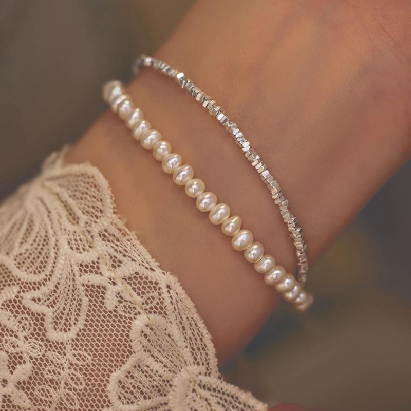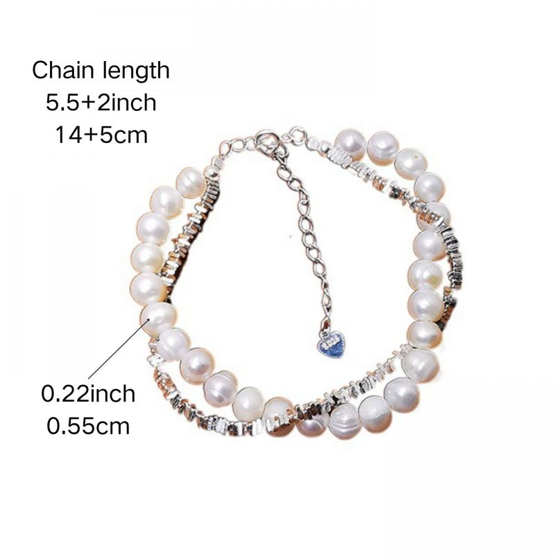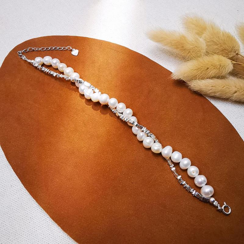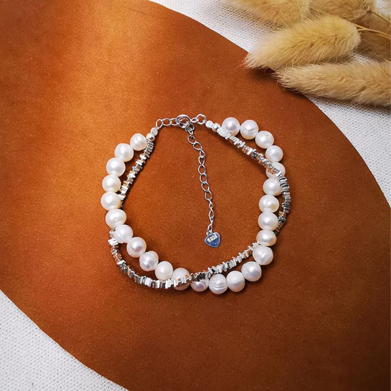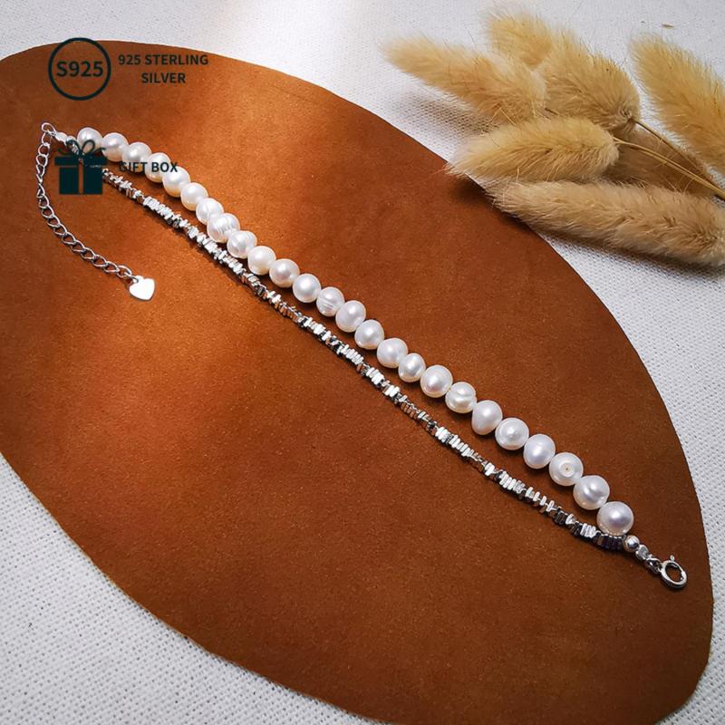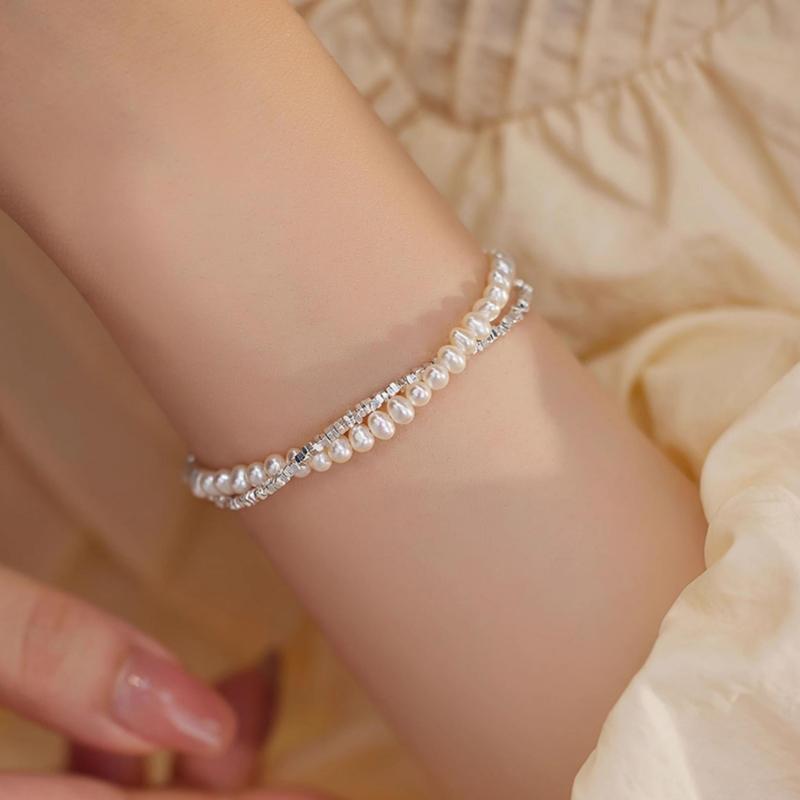 This double-layered bracelet is a romantic accessory made of S925 sterling silver and freshwater pearls. It is ideal for parties, banquets, and daily wear, showcasing natural pearl imperfections.