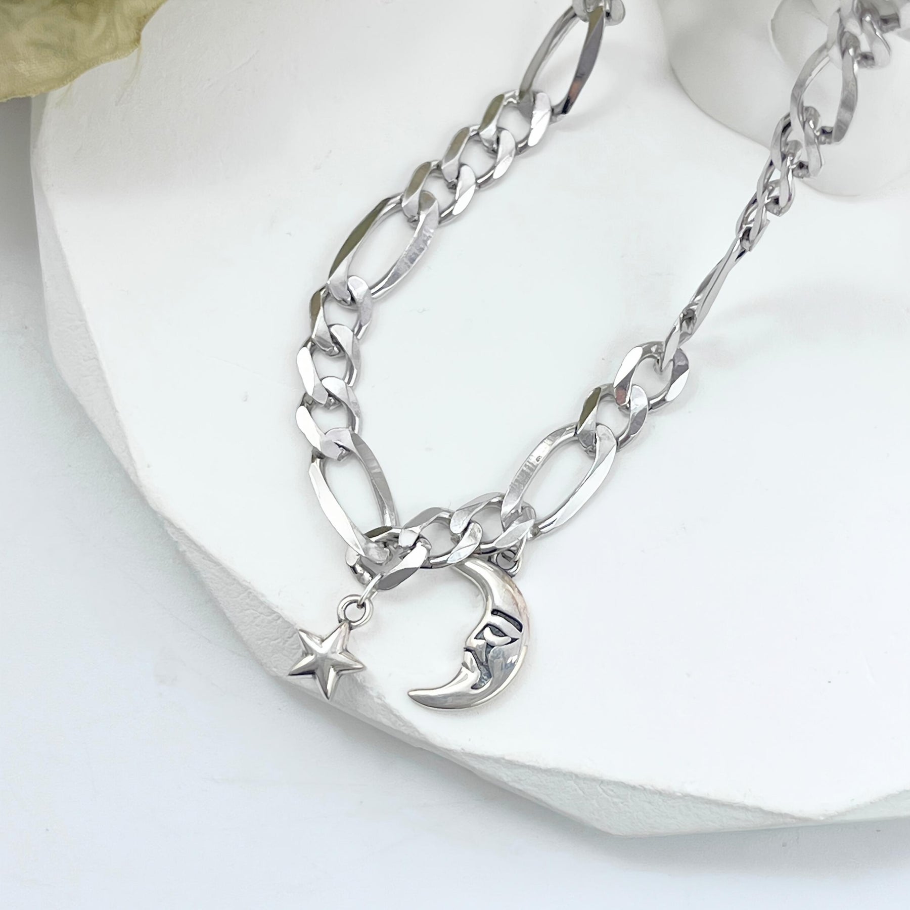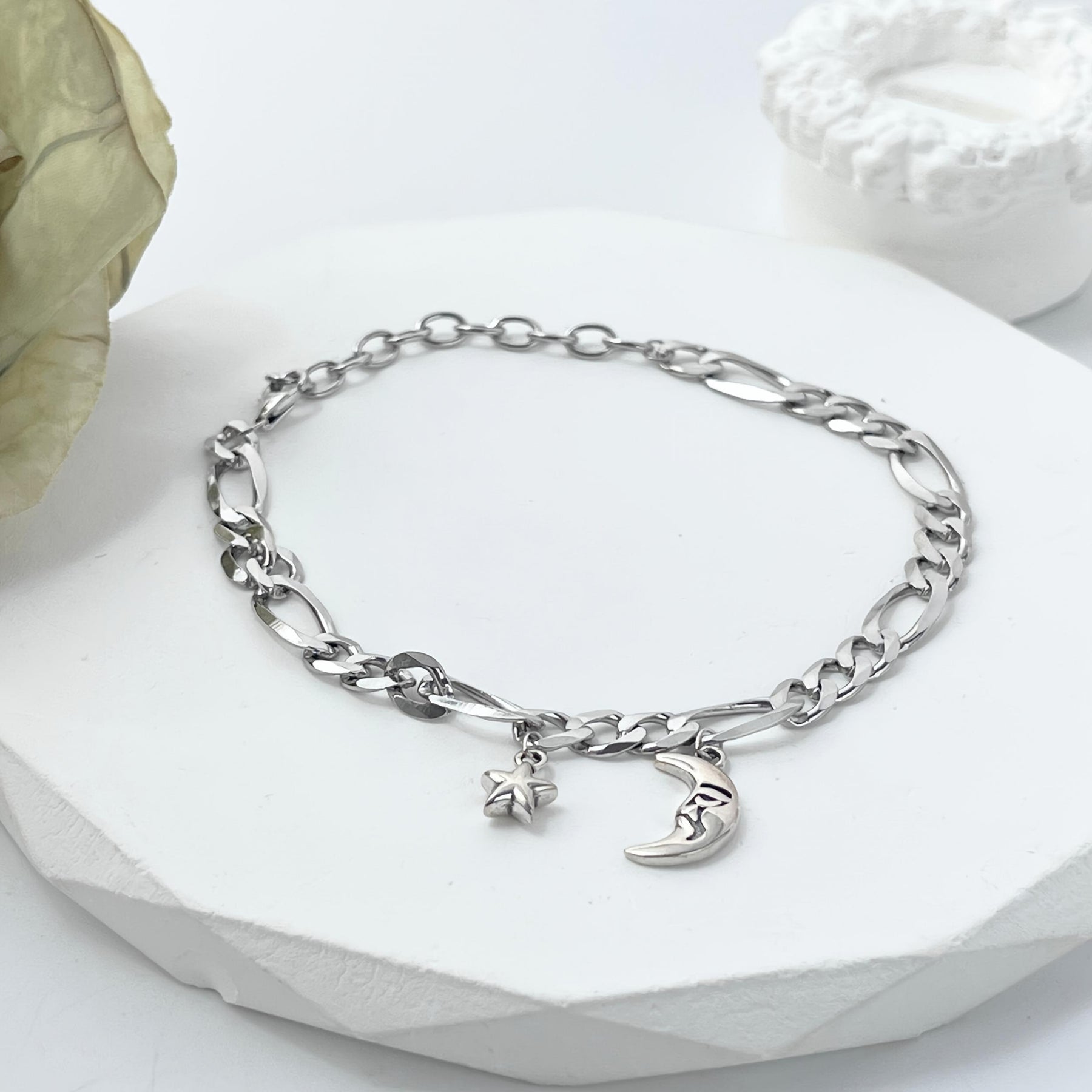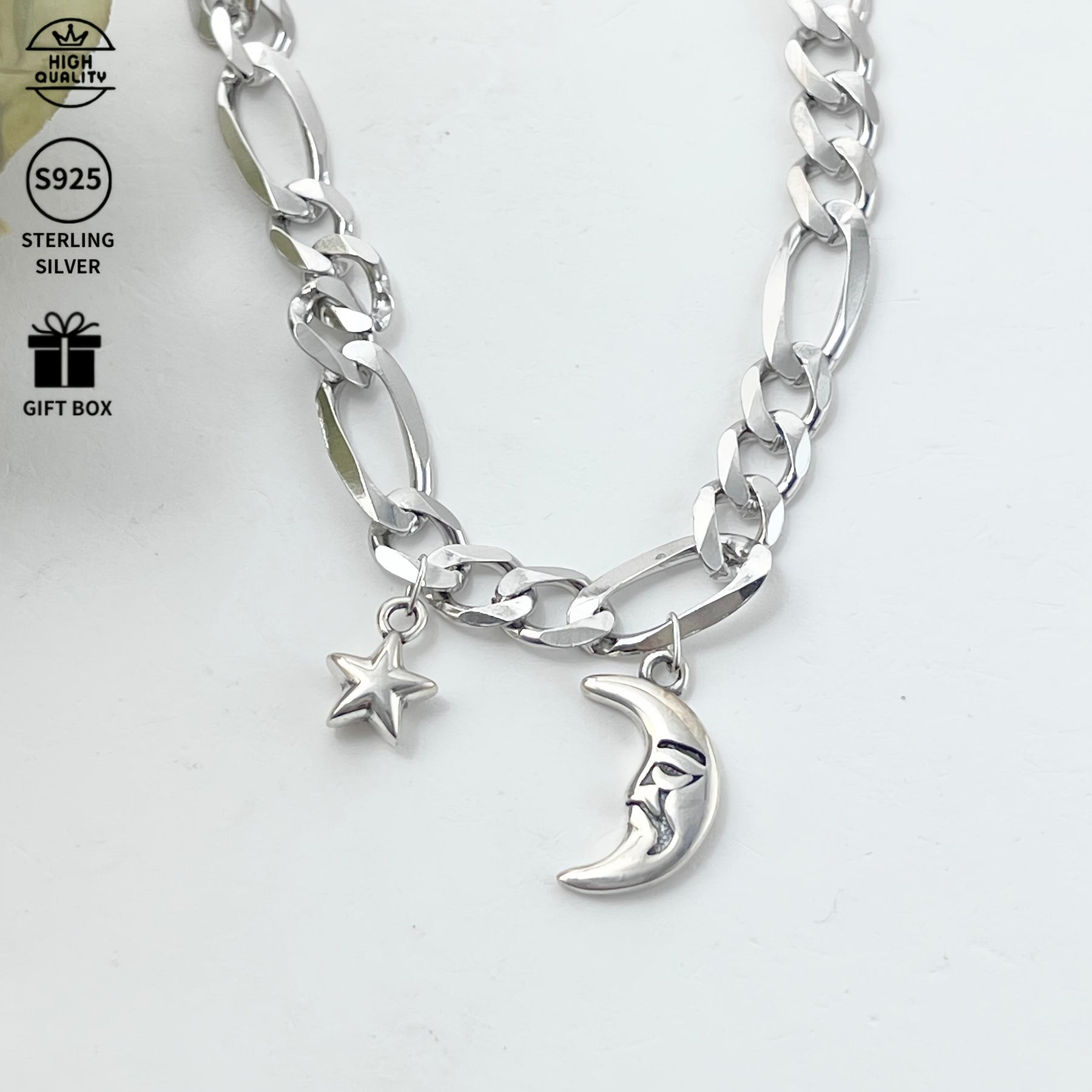 This avant-garde S925 Silver Moon Star Bracelet is perfect for everyday wear. It weighs about 7.33g and makes an ideal birthday gift for family and friends during the holidays.