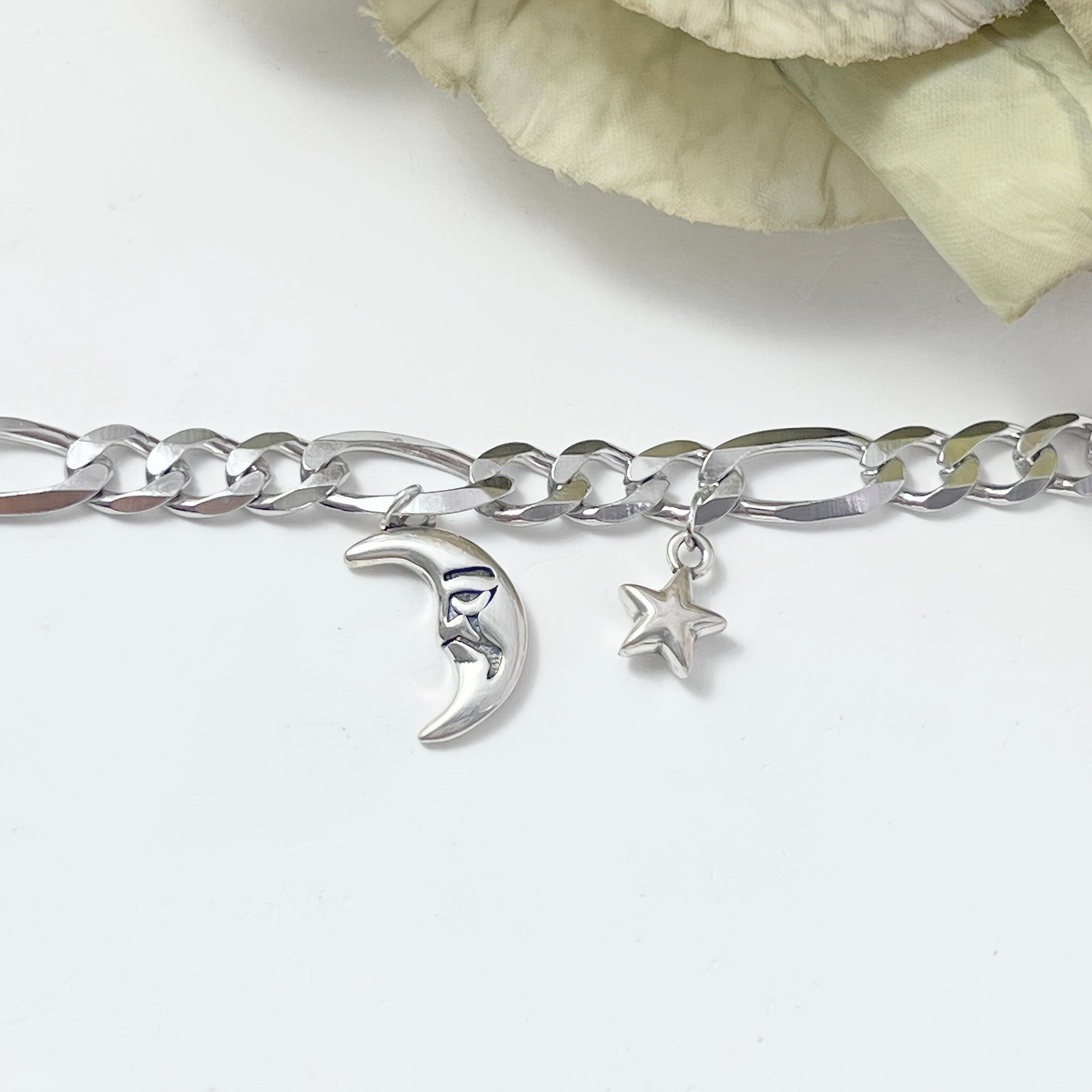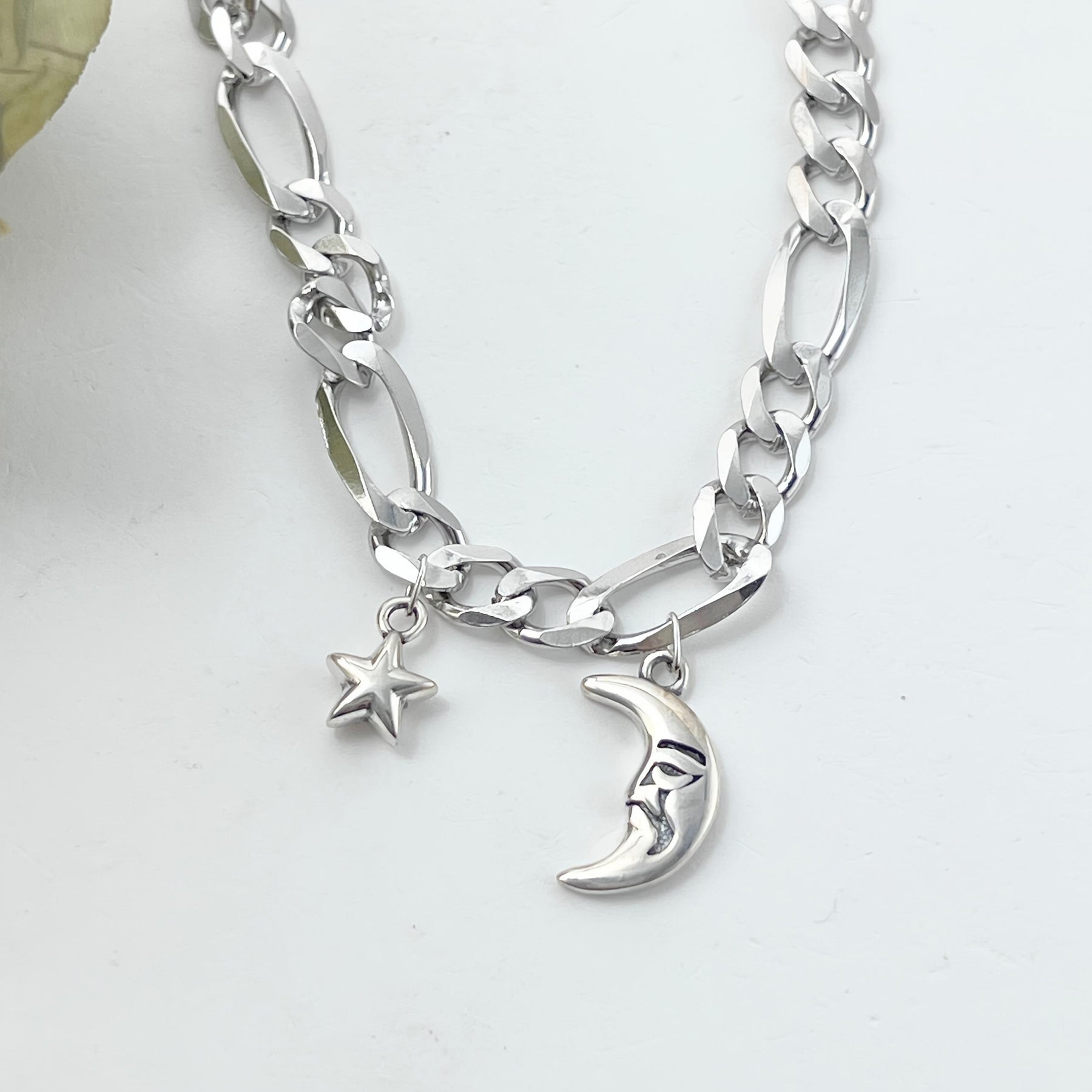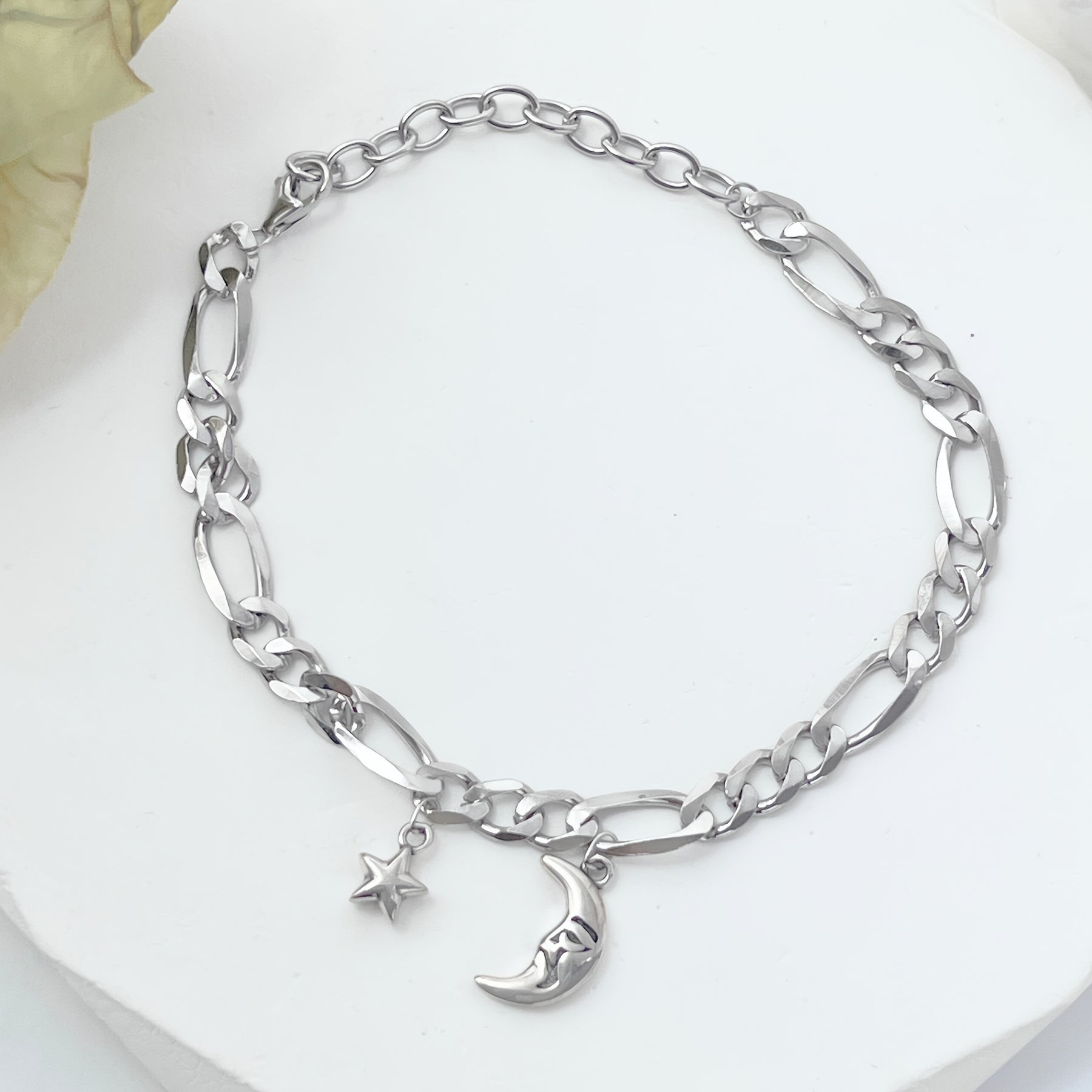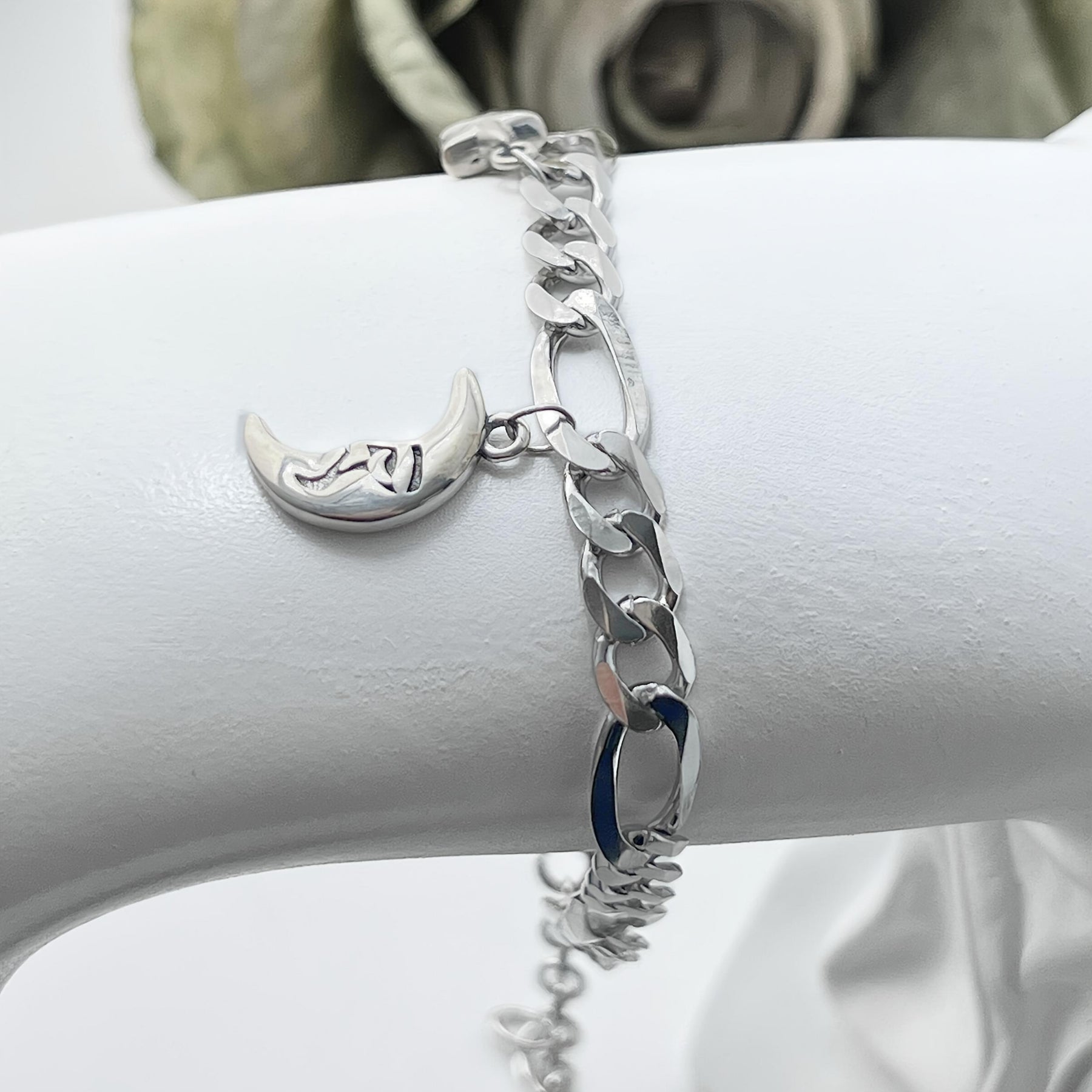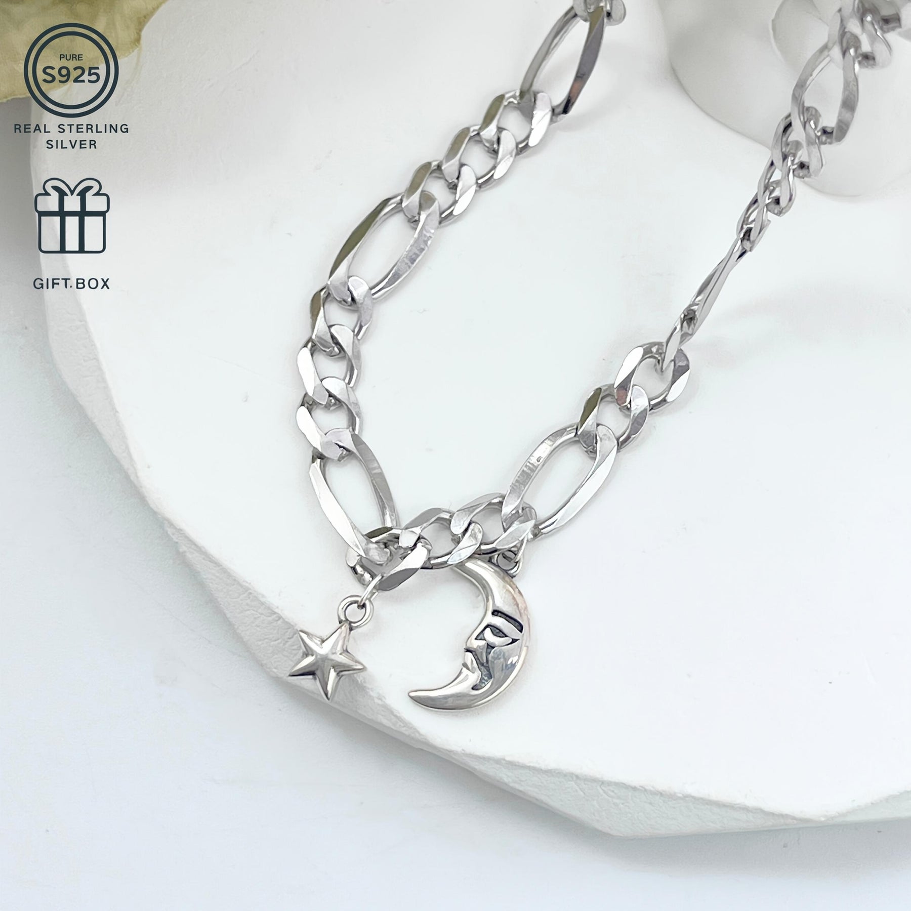 Elevate your style with this avant-garde moon and star bracelet crafted from S925 silver. Perfect for daily wear and makes a thoughtful birthday gift.