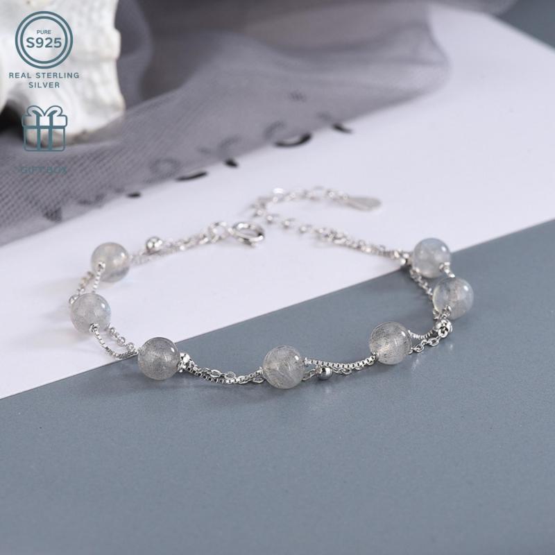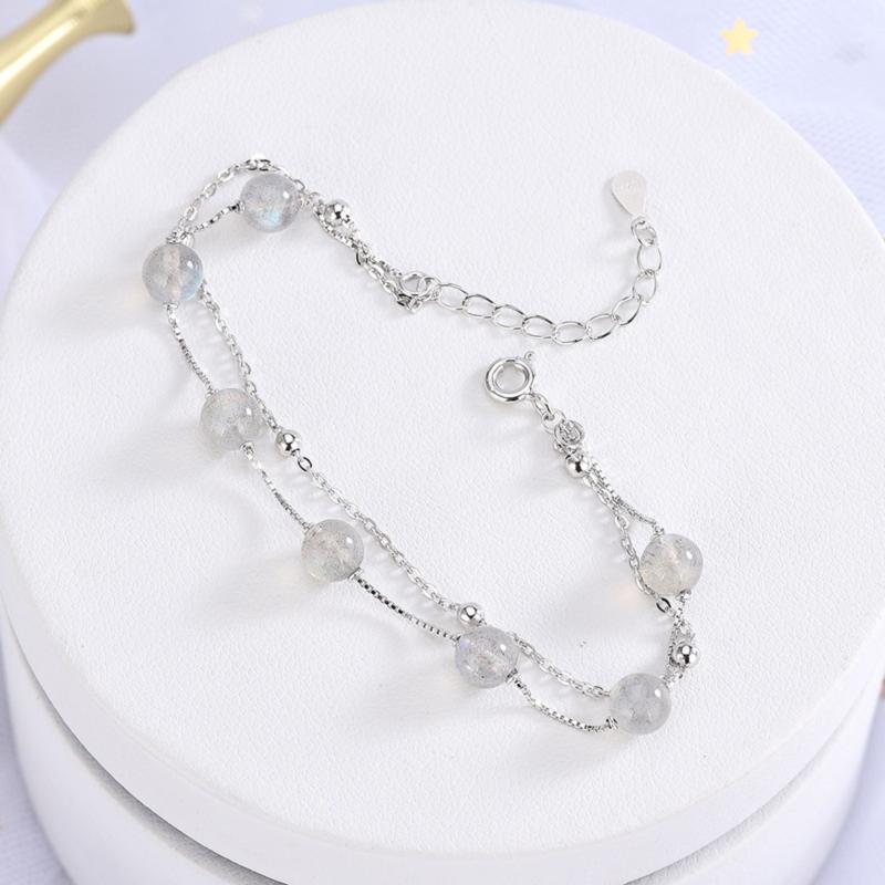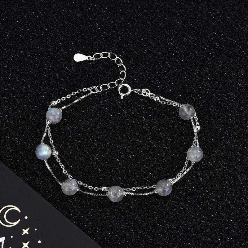 This bracelet features a natural moonstone on double layers with a retro design. The S925 silver enhances the elegance of this piece.