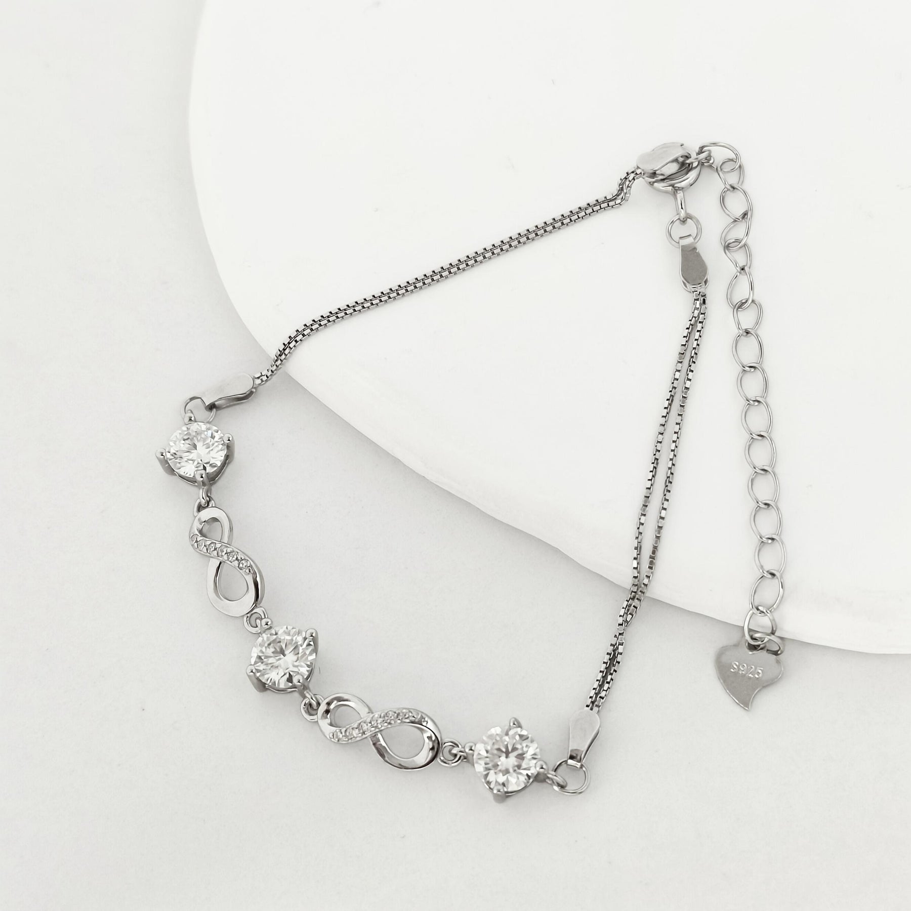 This fashionable and light bracelet set features a heart design with 3pcs of 0.5CT Moissanite stones. It is a personalized accessory suitable for casual wear. Approx weight: 5.3g. Perfect gift for Christmas or Thanksgiving.