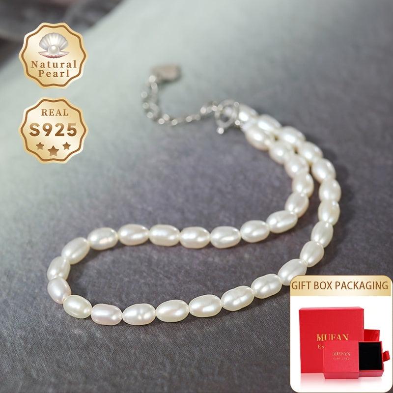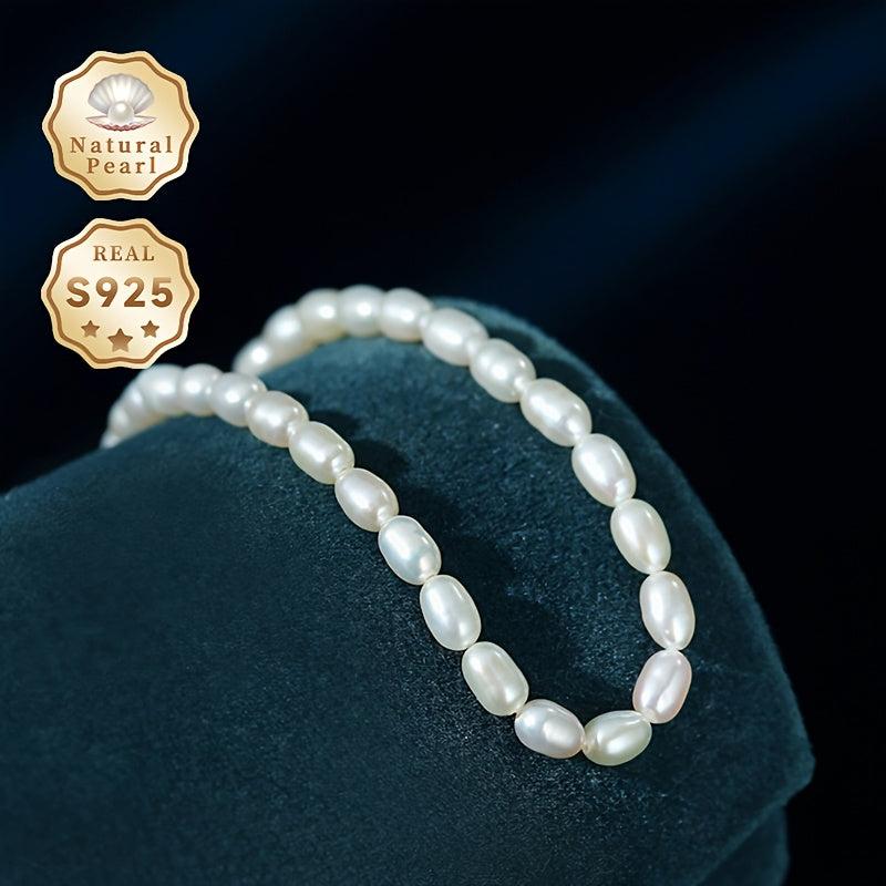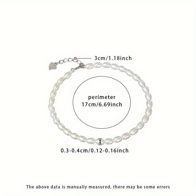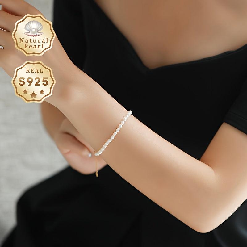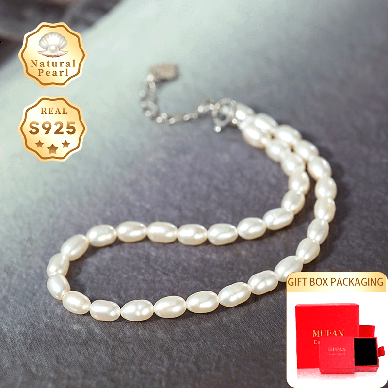 Elegant pearl bracelet featuring 3 4mm rice shaped natural freshwater pearls, adjustable in length for a perfect fit.