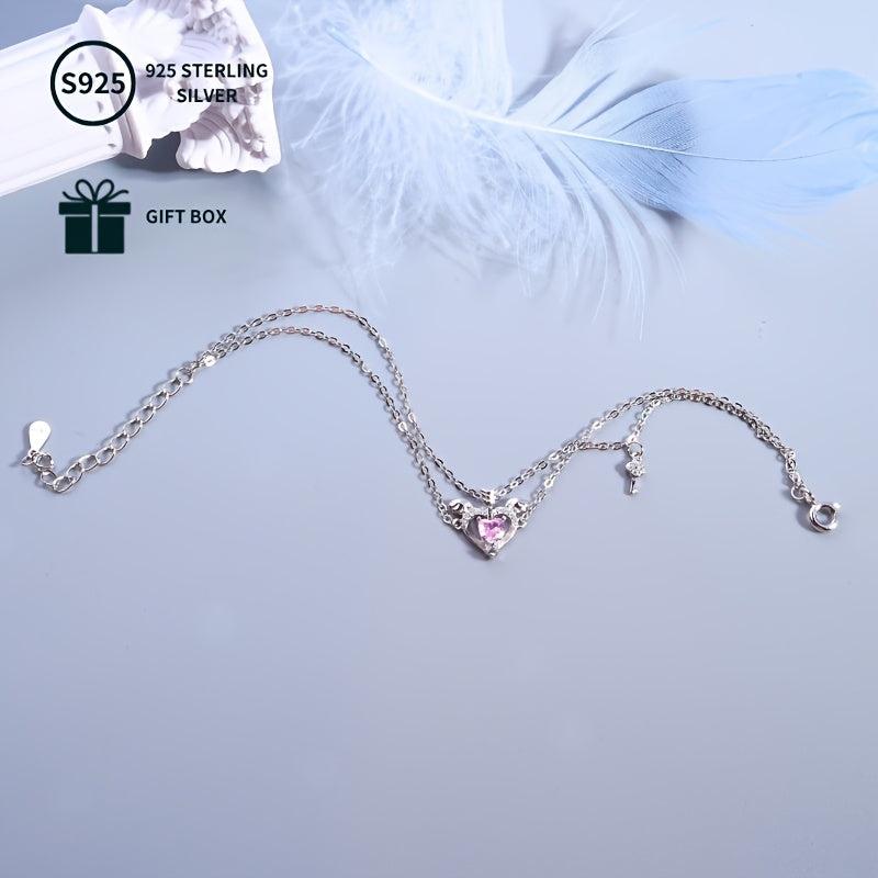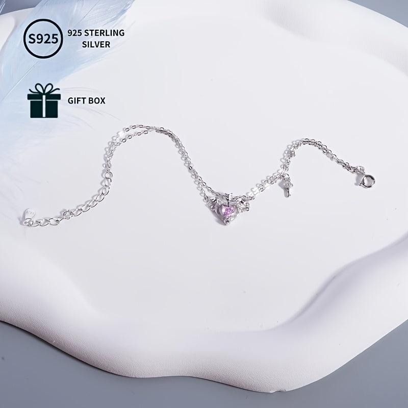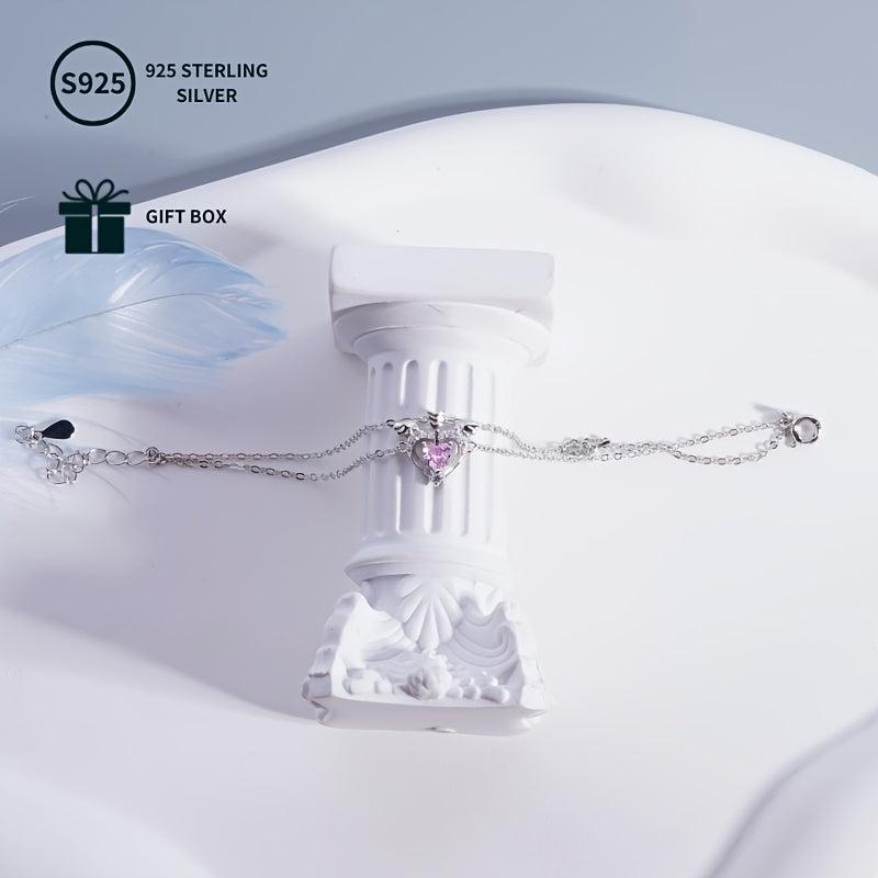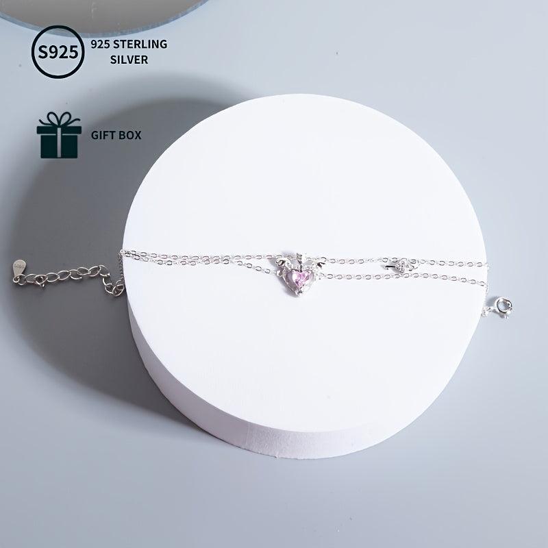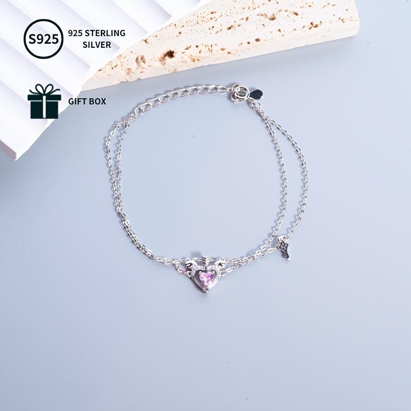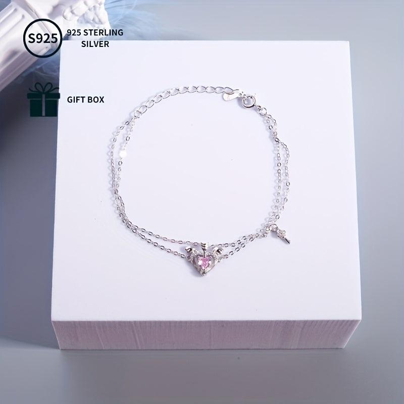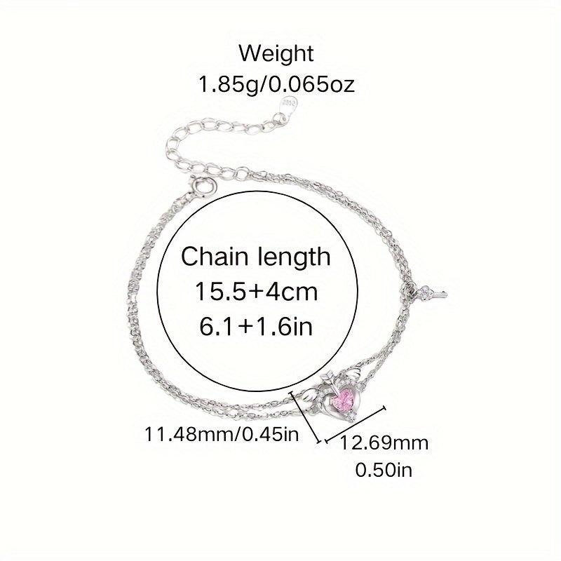 This unique S925 silver bracelet features a pink heart design with sparkling cubic zirconia. Perfect for Valentine's Day and daily wear, this double layer bracelet is ideal for everyday accessorizing.