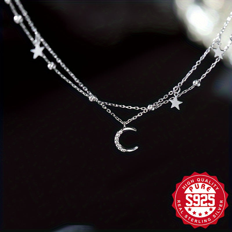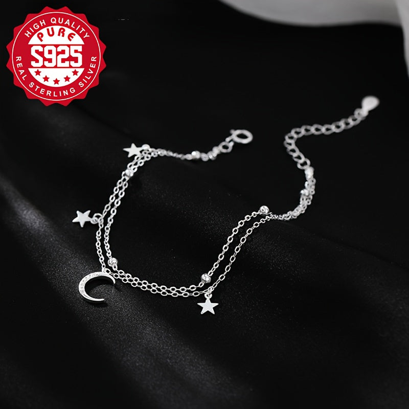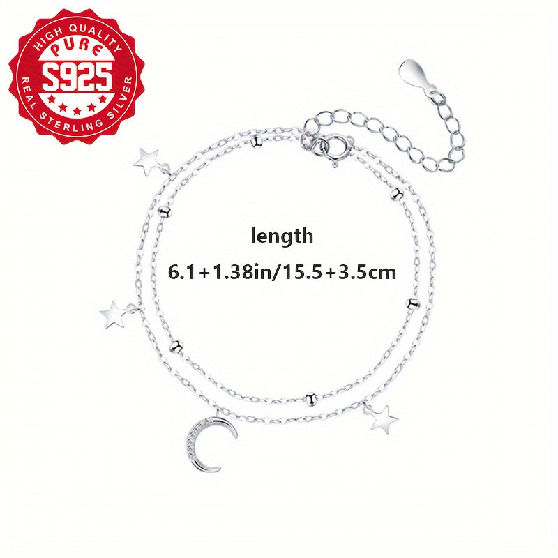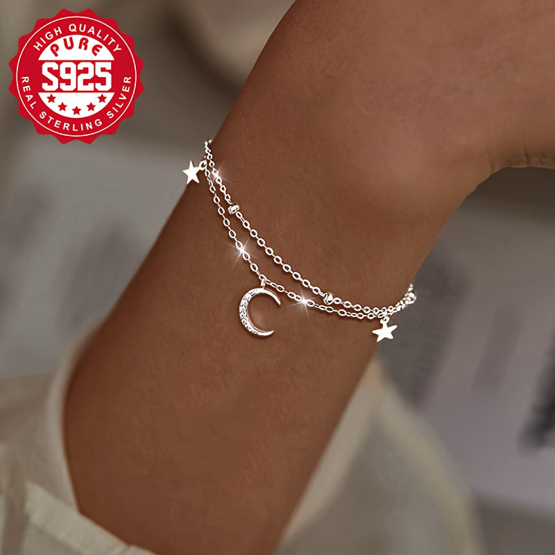 Elegant and stylish S925 silver bracelet featuring a star and moon design, perfect for daily wear. Ideal gift for friends and family. Embrace the starry night theme with this double layer bracelet.