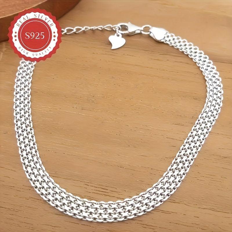 This stunning S925 sterling silver chain bracelet features a mesh embossed pattern, perfect for men and women. It adds a touch of elegance and sparkle, making it an ideal Christmas gift.