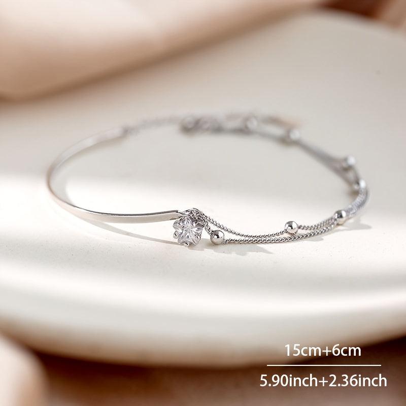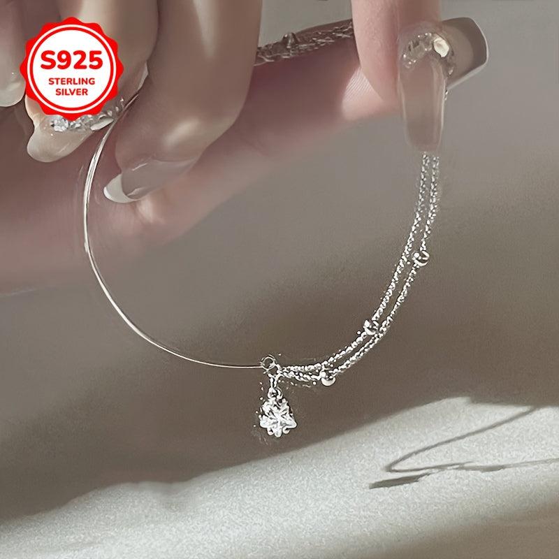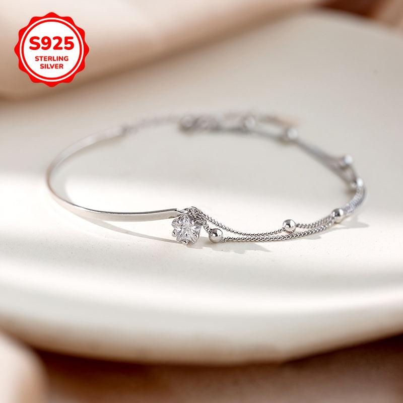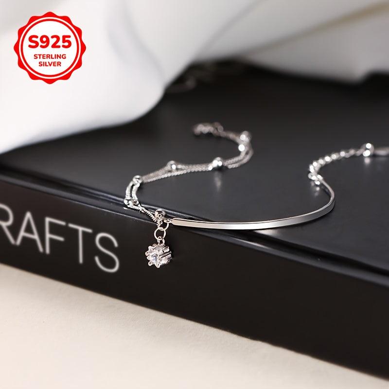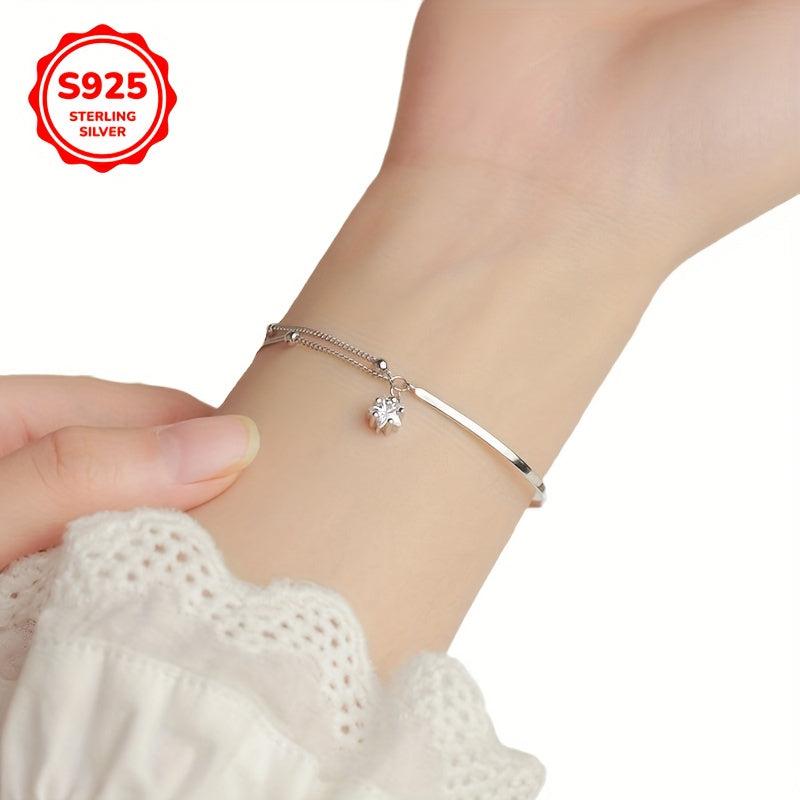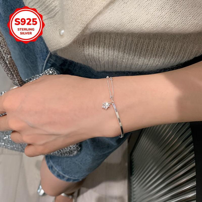Elegant S925 pure silvery bracelet with a unique asymmetrical splicing design and dazzling star-shaped zirconia. Versatile and fashionable accessory.