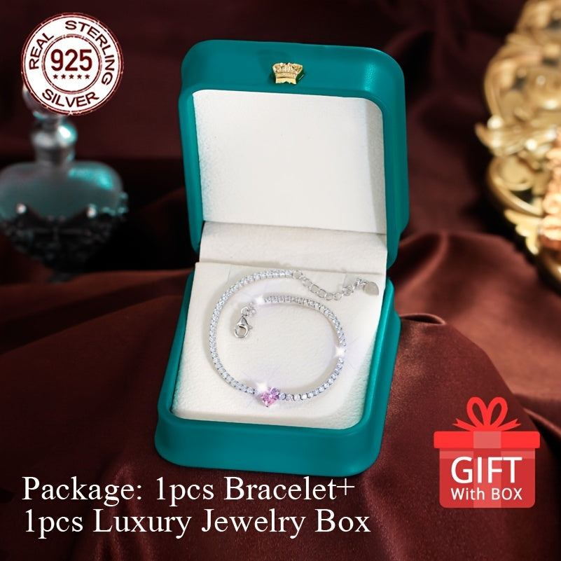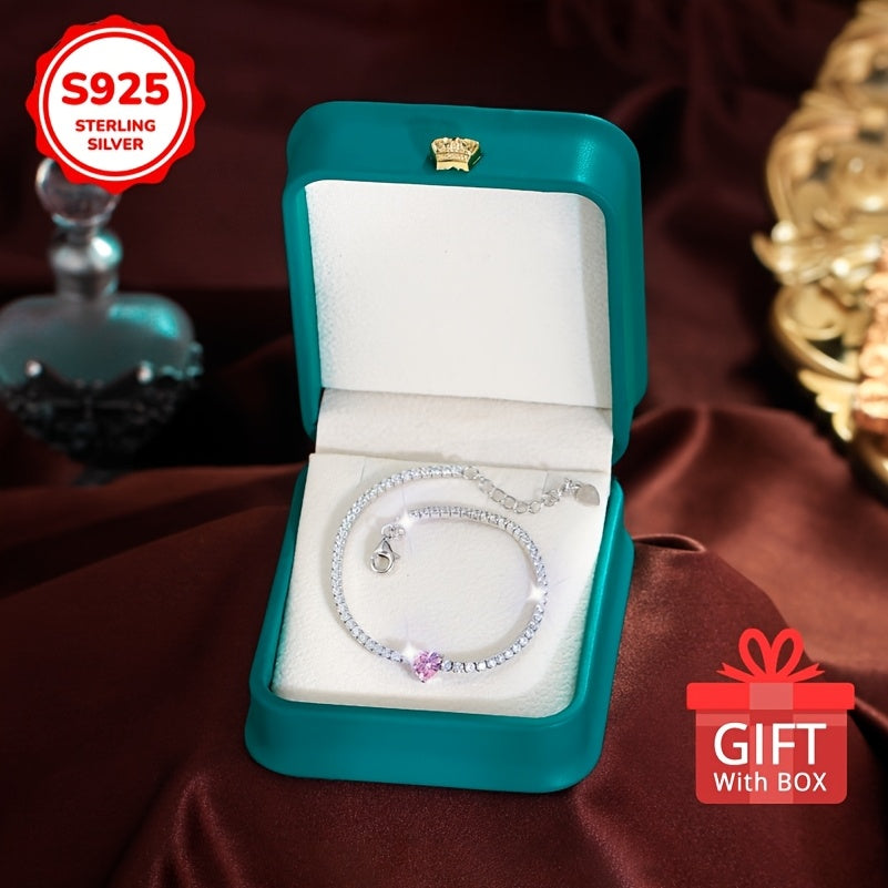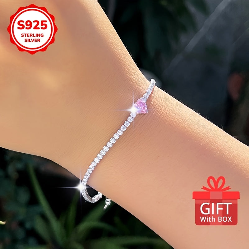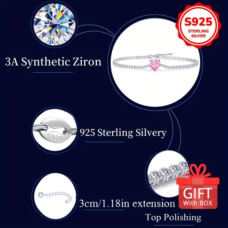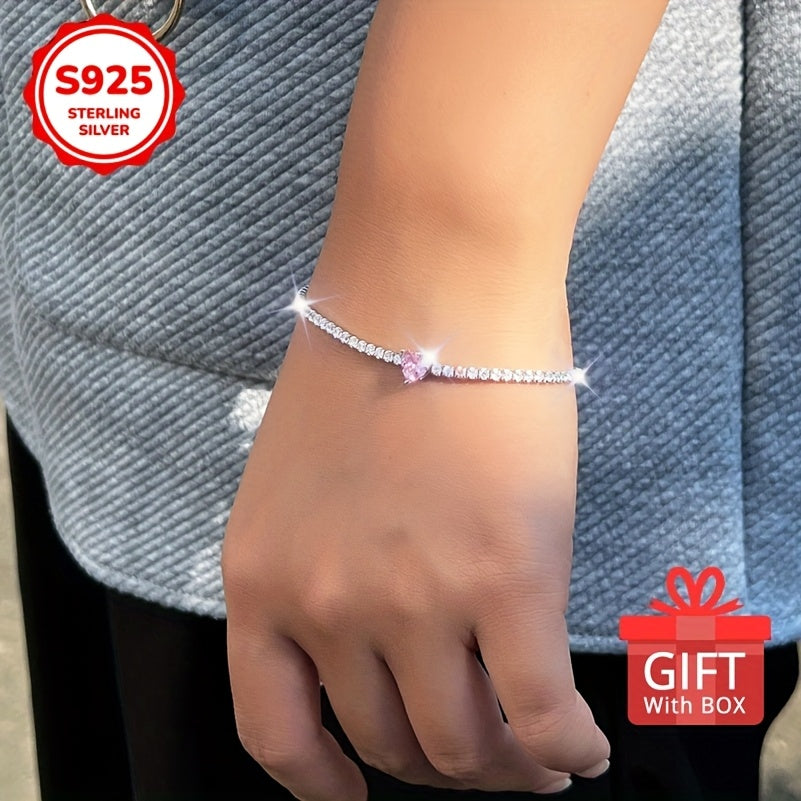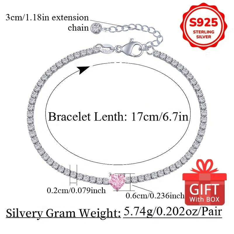 This beautiful tennis bracelet features sweet pink zirconia heart charm. The adjustable design ensures a perfect fit and adds a touch of elegance to any outfit.