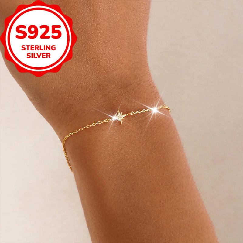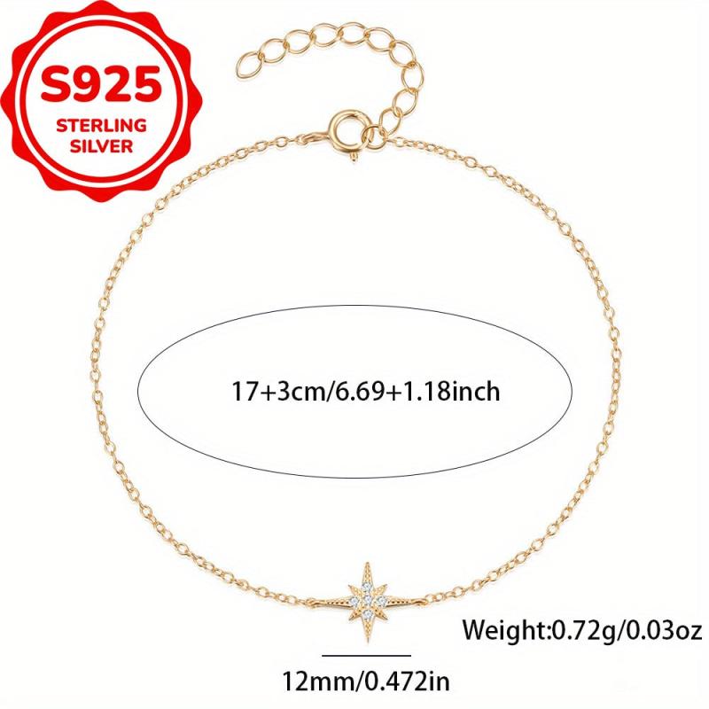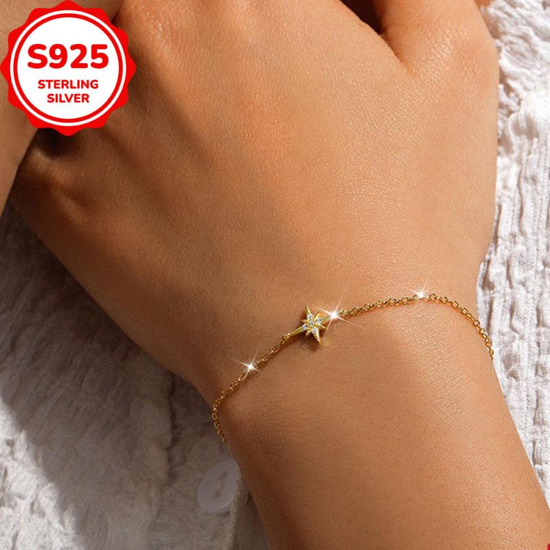 This S925 pure silver bracelet features an octagonal star design with shimmering zirconia stones. Ideal for daily wear, parties, and special occasions. Makes a lovely gift for birthdays.