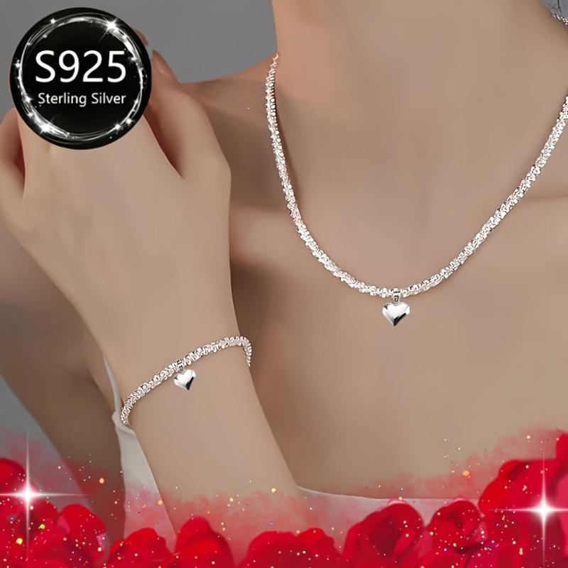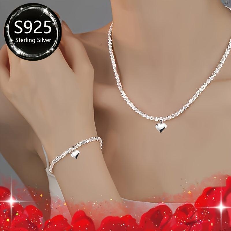 This set features a sparkling love pendant necklace and bracelet, perfect for adding a touch of romance to your outfit. The starry design adds a touch of magic to your look.