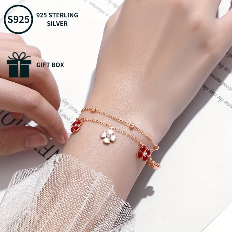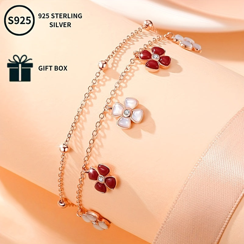 This elegant bracelet features a minimalist clover motif, perfect for parties, banquets, and everyday wear. Made of high-quality S925 sterling silver, it's lightweight and comfortable to wear.