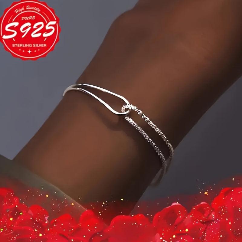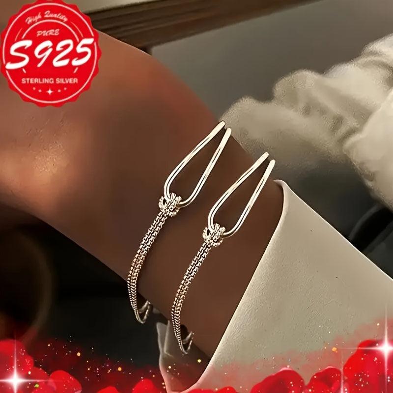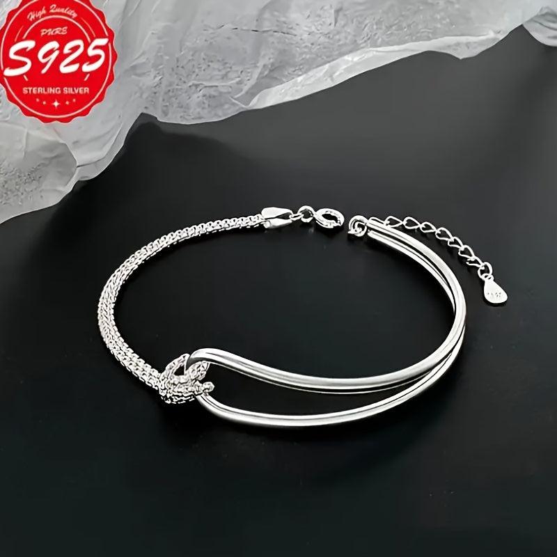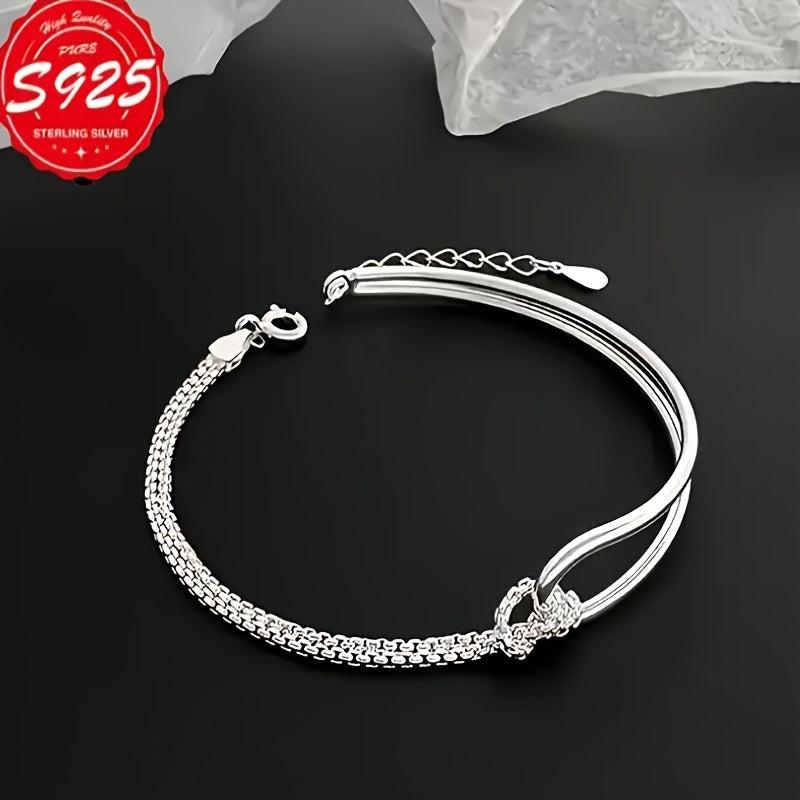 This stylish bracelet is crafted from S925 sterling silver, featuring a double knot design. It's a fashionable accessory suitable for daily wear and gifting on any occasion. Perfect for all seasons.