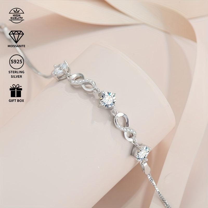 This stunning S925 sterling silver bracelet features a 0.5ct moissanite in a heart design. Perfect for anniversary or birthday gifts for girls.