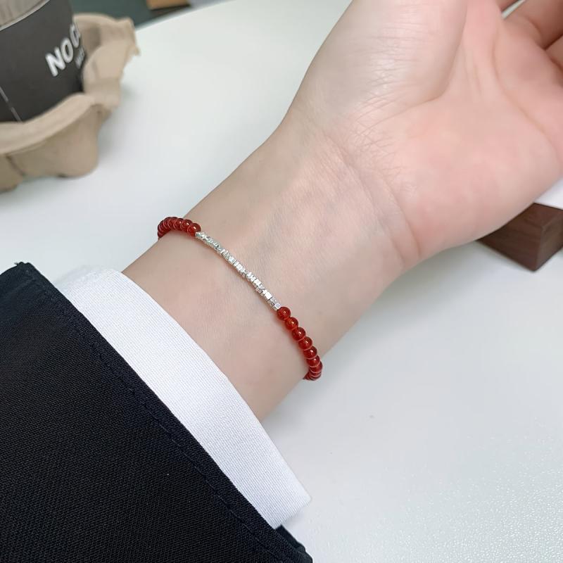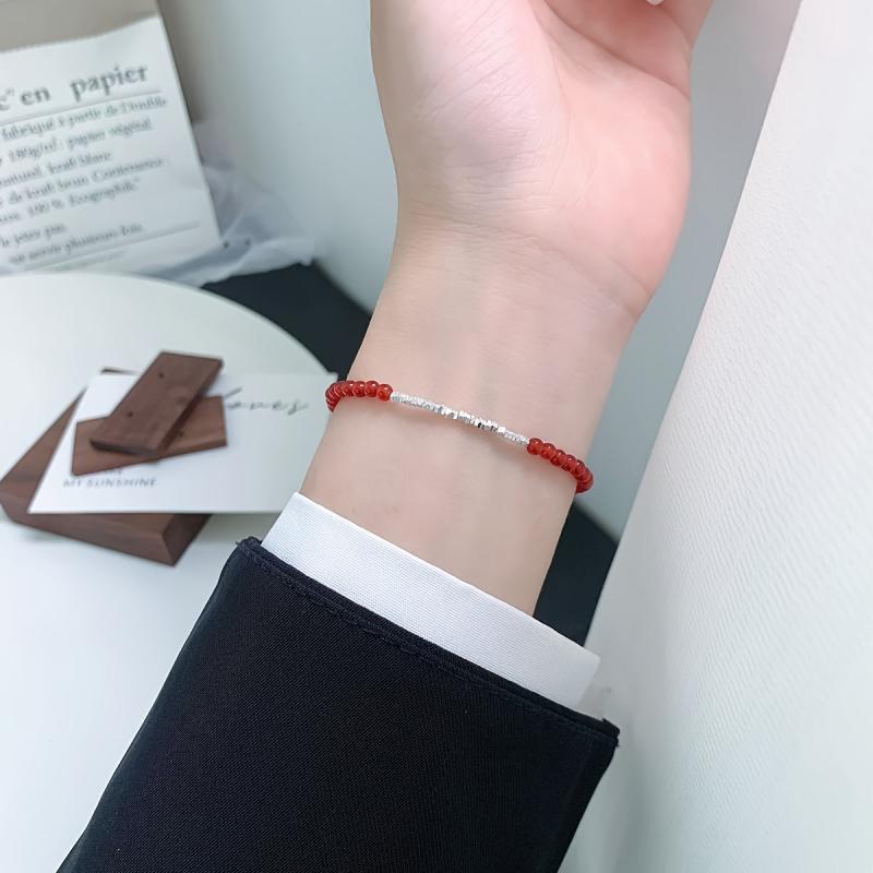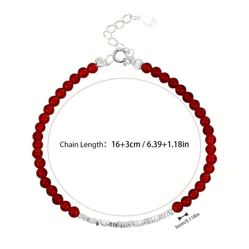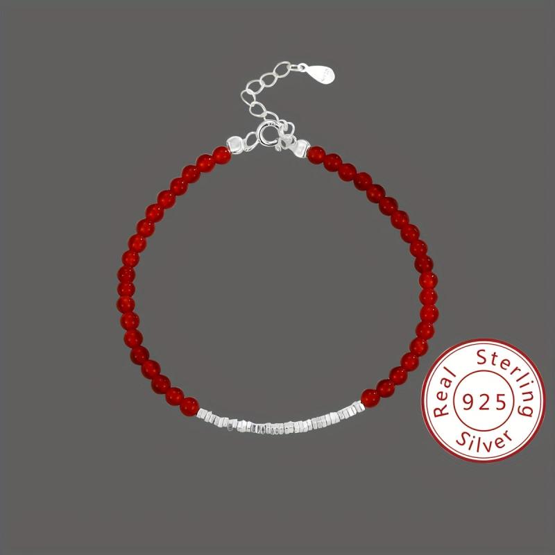 This S925 sterling silver bracelet features versatile red agate beads, perfect for adding a pop of color to any outfit. The light natural stone beads are beautifully crafted to create a stunning accessory for women.