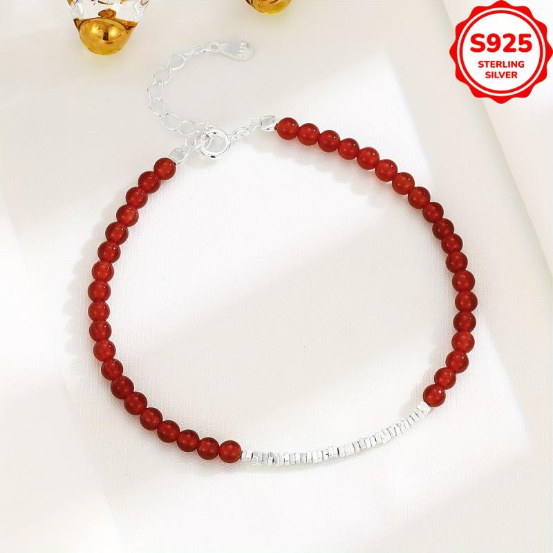 S925 Sterling Silver Red Agate Bracelet, Natural Stone Bead Jewelry