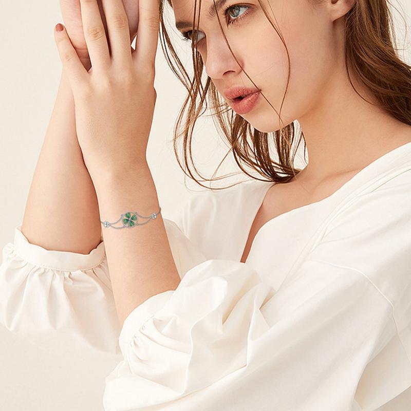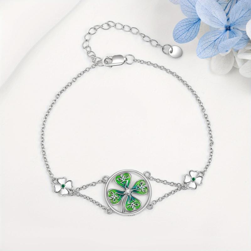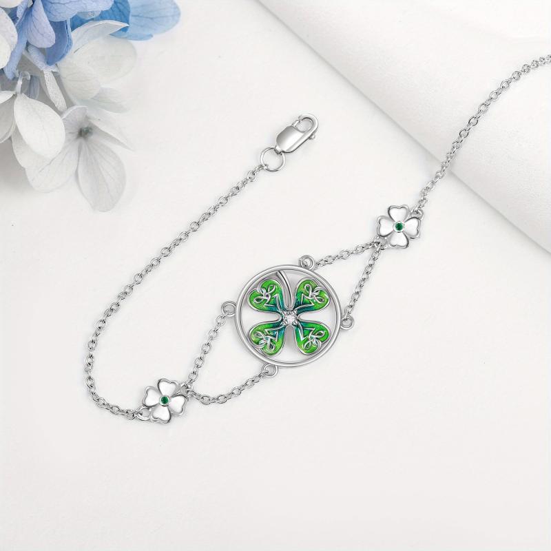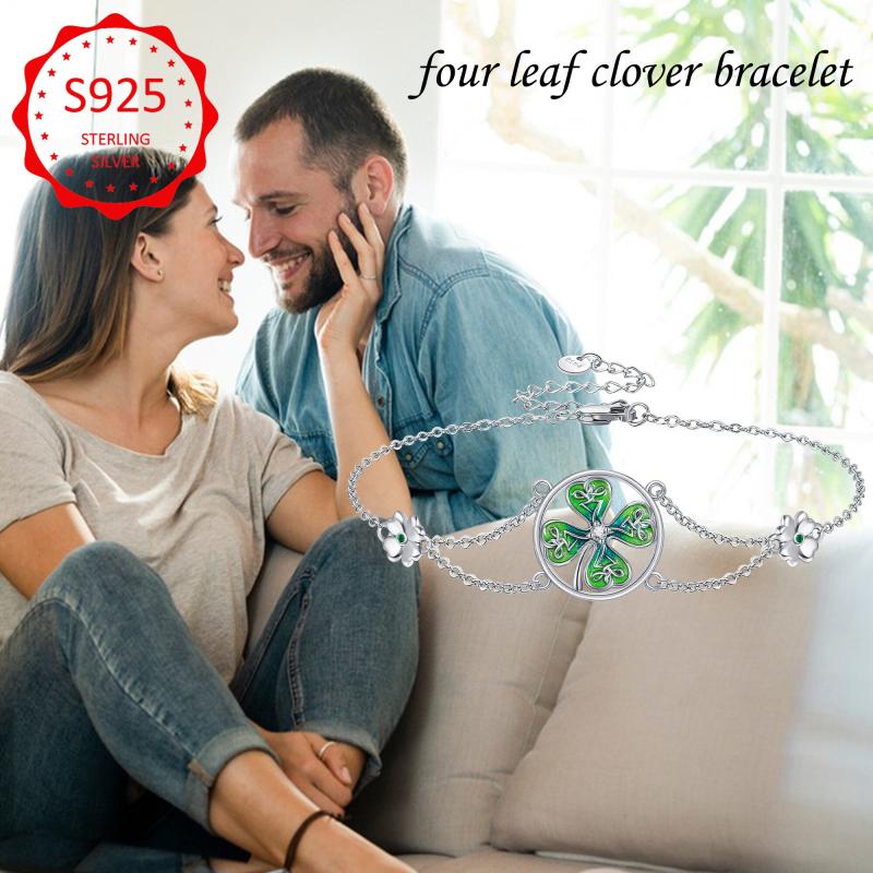 This stunning bracelet features a four leaf clover design, symbolizing good luck and fortune. Made of high quality S925 sterling silver, this piece is perfect for both men and women. Ideal as a gift for St. Patrick's Day or any special occasion.