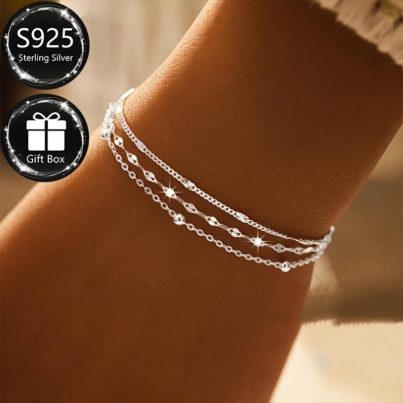 Elegant and versatile, this bracelet is crafted from quality S925 sterling silver and features three distinct chain styles. Perfect for daily wear and hypoallergenic.