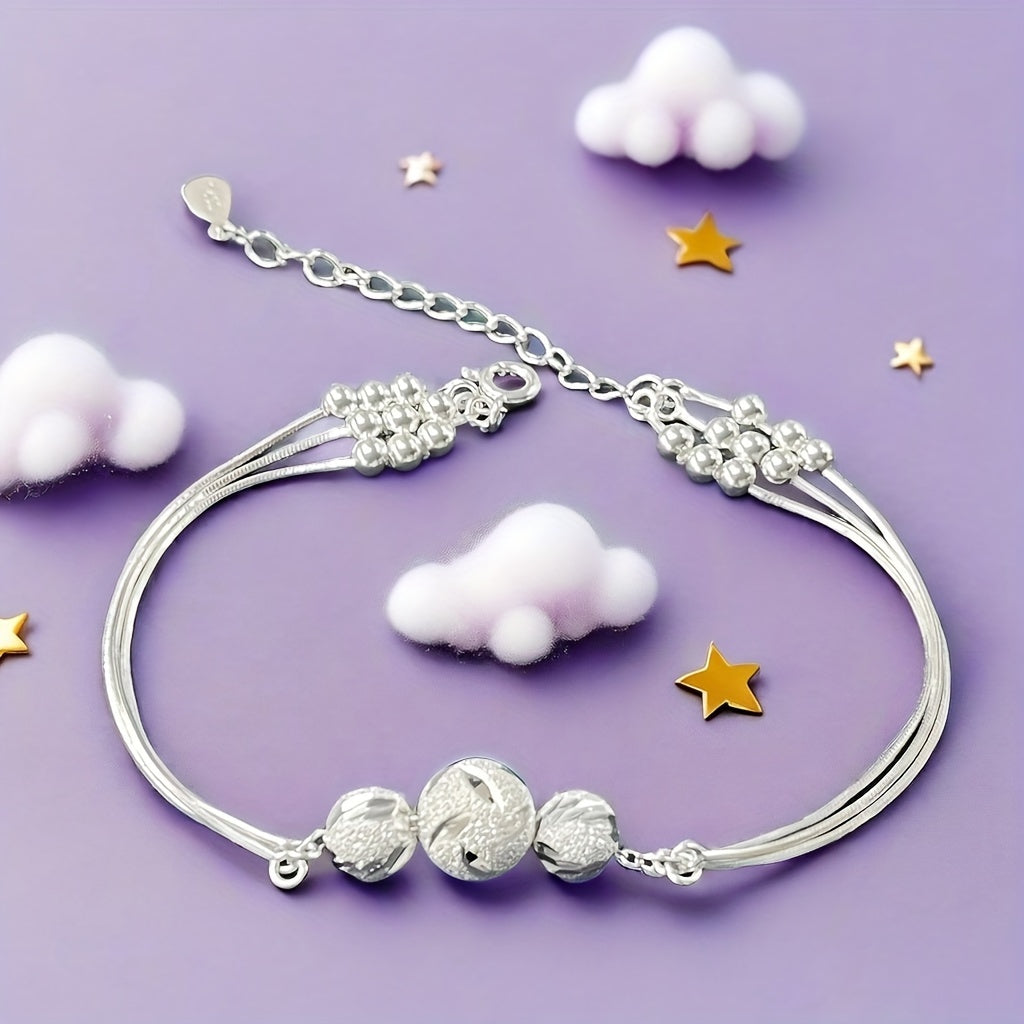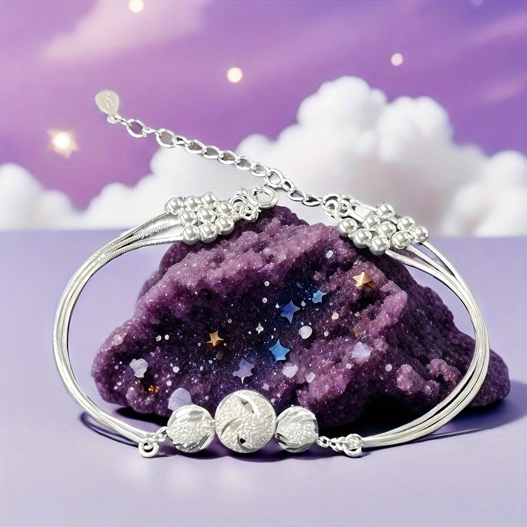 This S925 sterling silver bracelet features a trendy three-layer design inspired by the Three Lives Three Worlds novel. It is a unique and fashionable accessory that brings luck and style to any outfit.