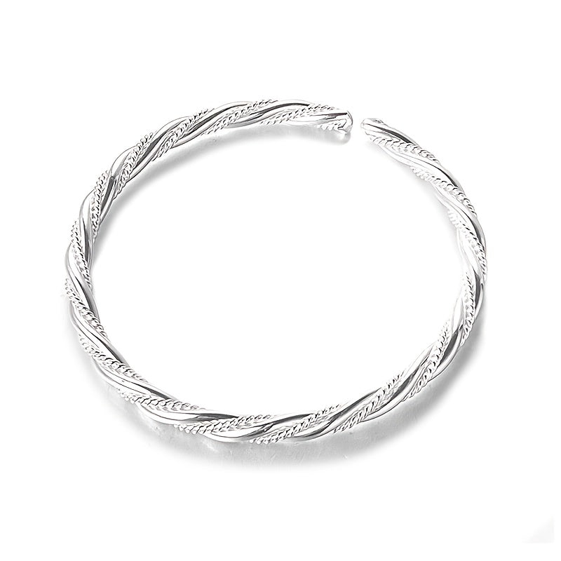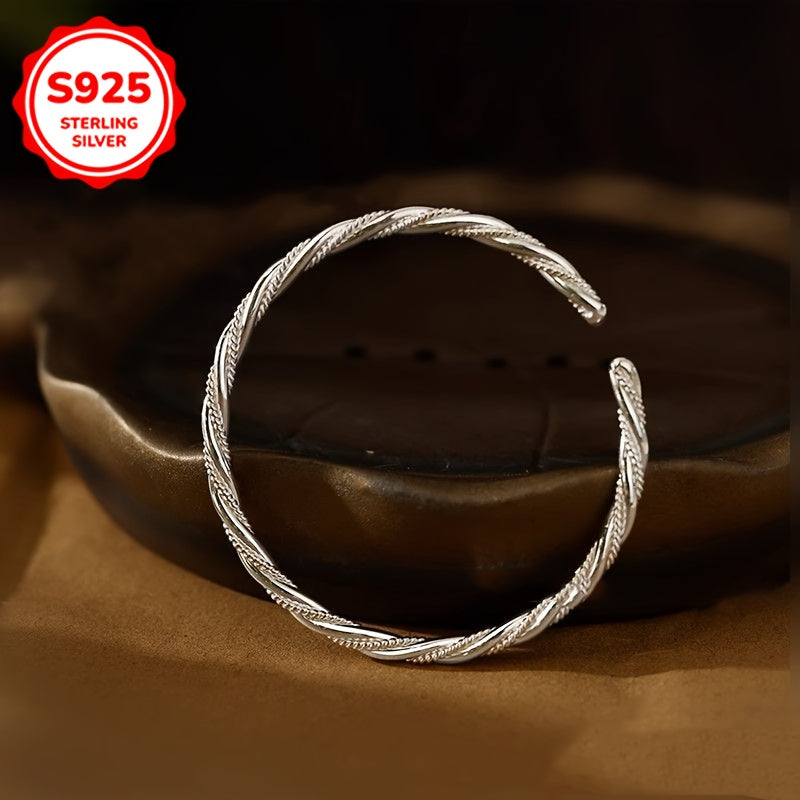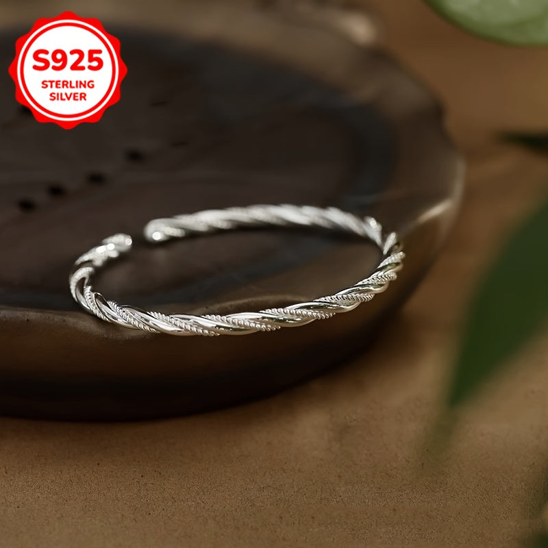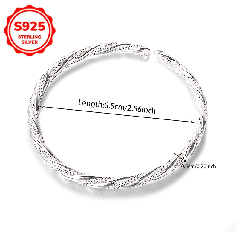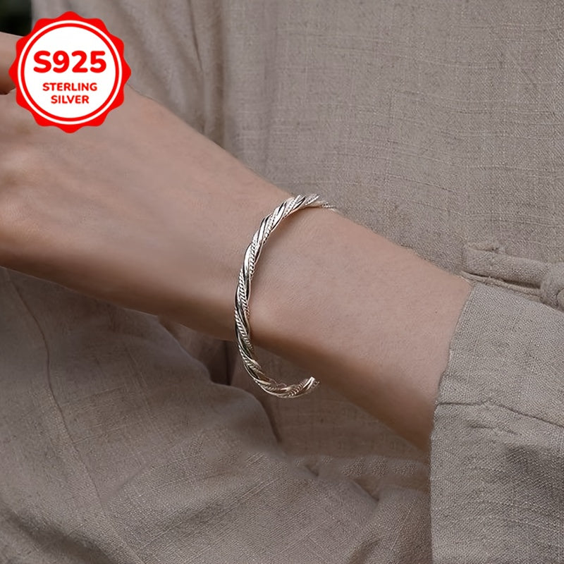 Versatile and stylish twisted rope bangle made of S925 silver, perfect for everyday wear. Ideal as a Valentine's or birthday gift. Features a low allergy design for comfortable wear.