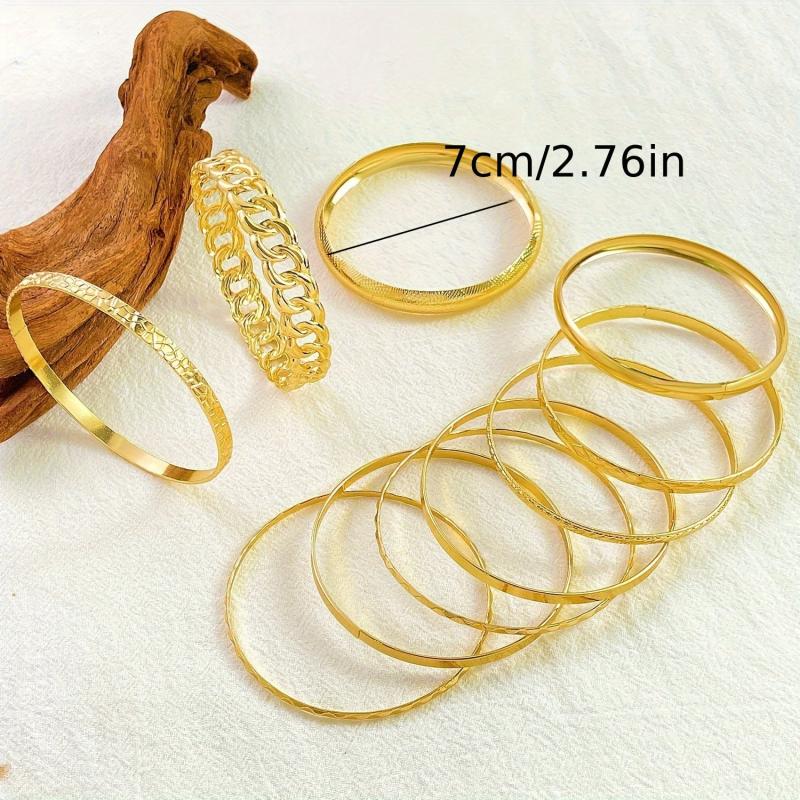 Add a touch of retro style to your outfit with this set of 10 minimalist geometric bangles. Made with high quality materials and featuring unique designs, these bangles are perfect for adding a pop of color and style to any look.