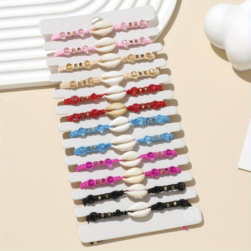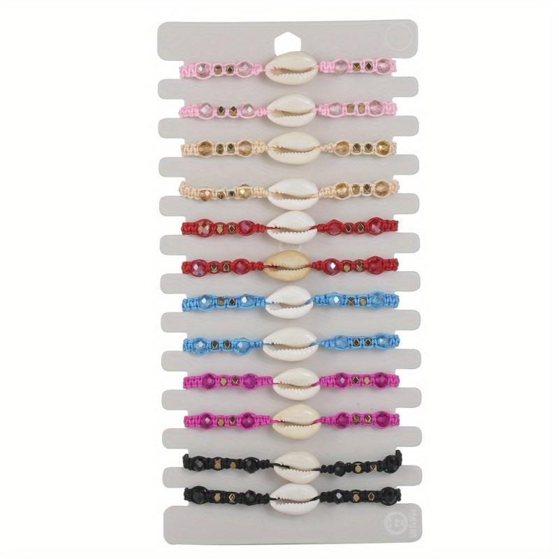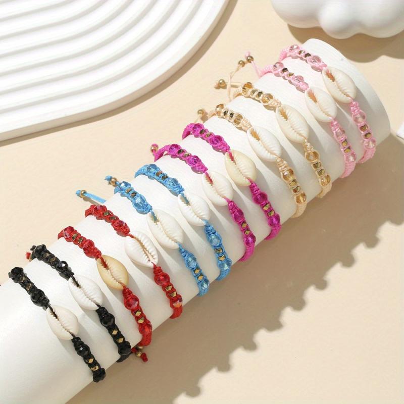 These vibrant woven natural shell bracelets are perfect for vacations and everyday wear. Express your love for the ocean with this set of 12 unique bracelets that are adjustable to fit any wrist size.
