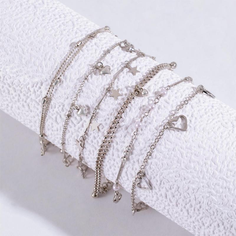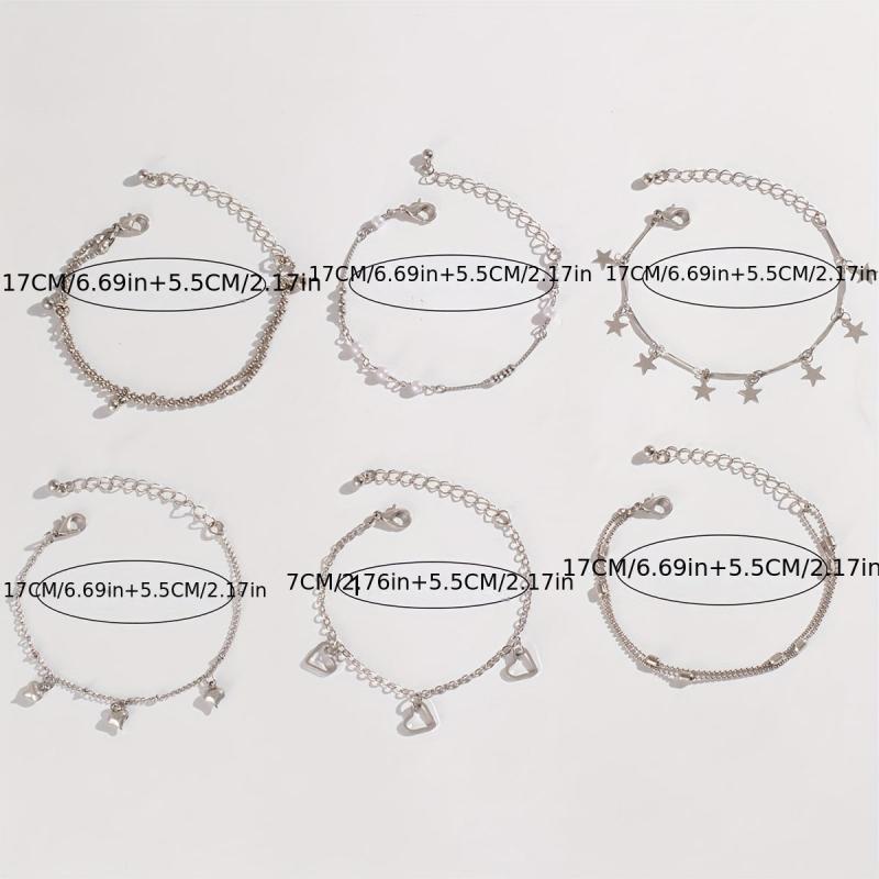 Set of 6 punk style heart and star pendant bead chain necklace with matching gold color. Perfect for adding a touch of edgy style to your outfit.