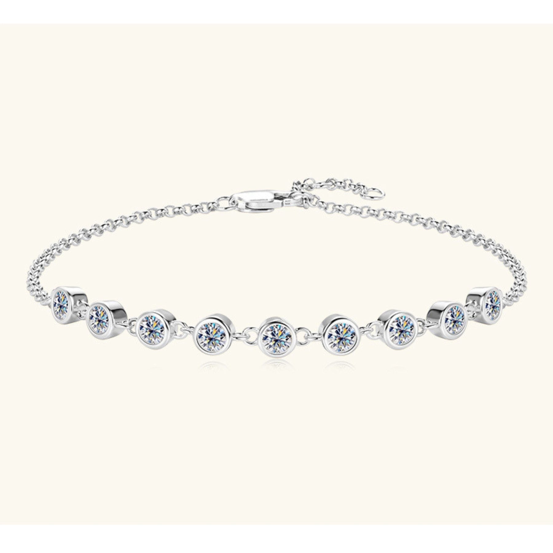 Elevate your look with this boho chic silver plated bracelet featuring a stunning 0.9ct moissanite stone. Made with 925 sterling silver, this January birthstone jewelry is perfect for music festivals or vacations.