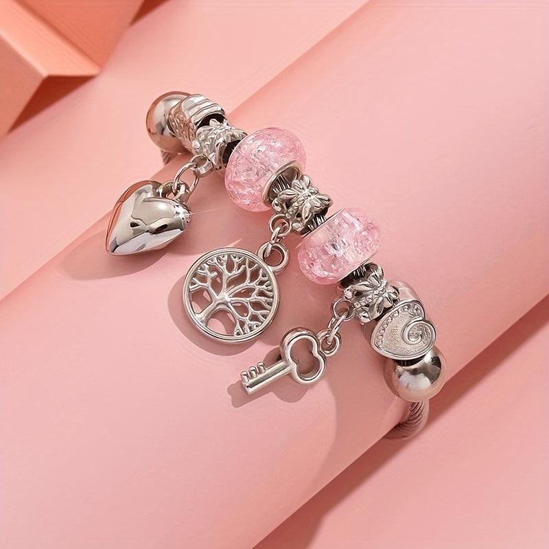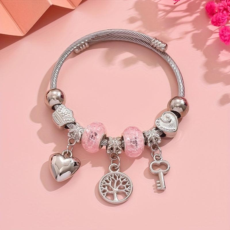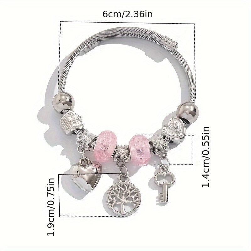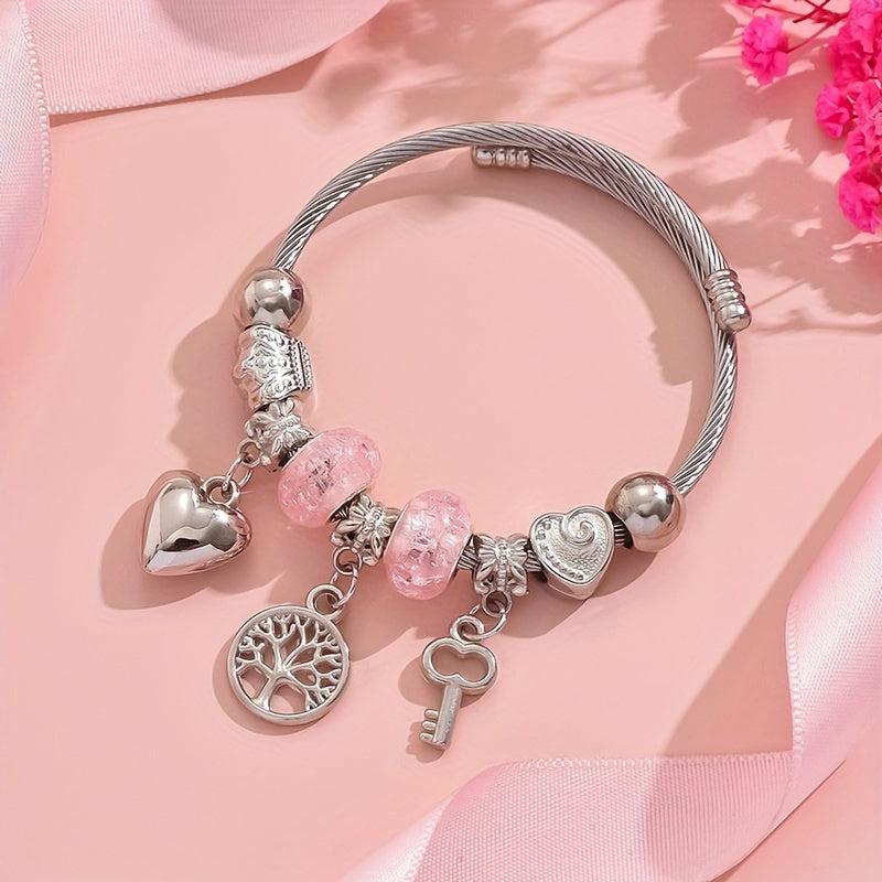 This sexy open cuff bracelet features a tree of life and heart charm design made of resin. It is adjustable and perfect for daily wear or as a gift for any occasion. Ideal for all seasons.