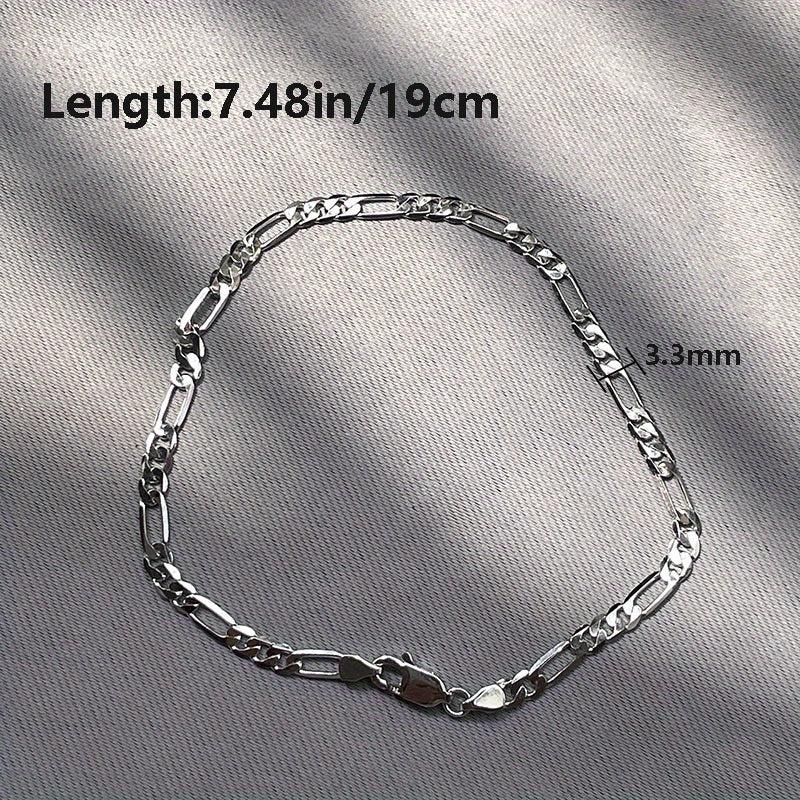This sterling silver bracelet is a stylish accessory for everyday or party wear. It features a 3.3mm link design and is platinum plated for a sleek look. Perfect for all seasons and compatible with any outfit.
