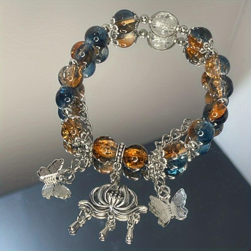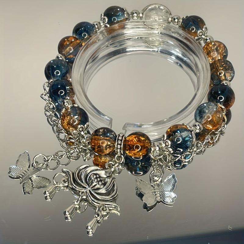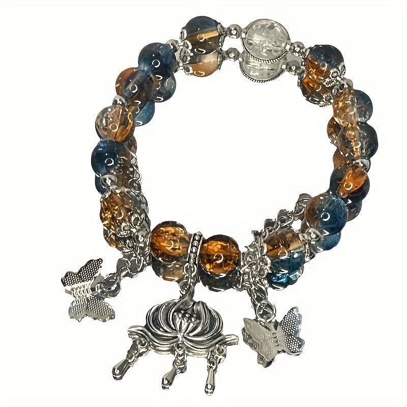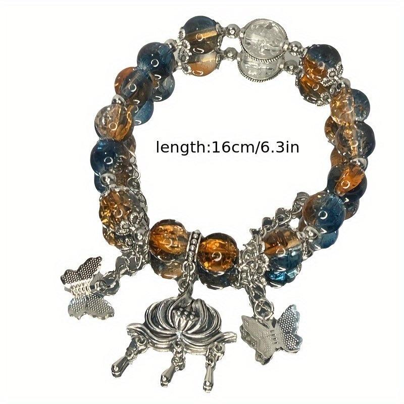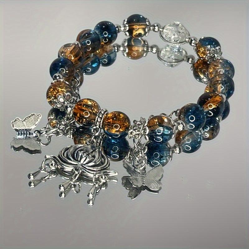 Elegant beaded bracelet featuring a silvery butterfly design perfect for women.