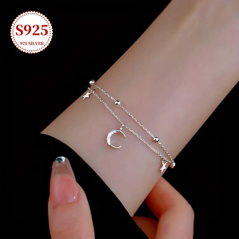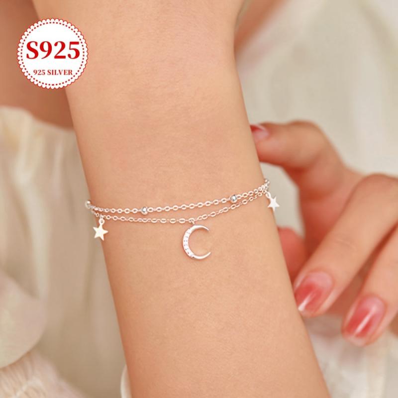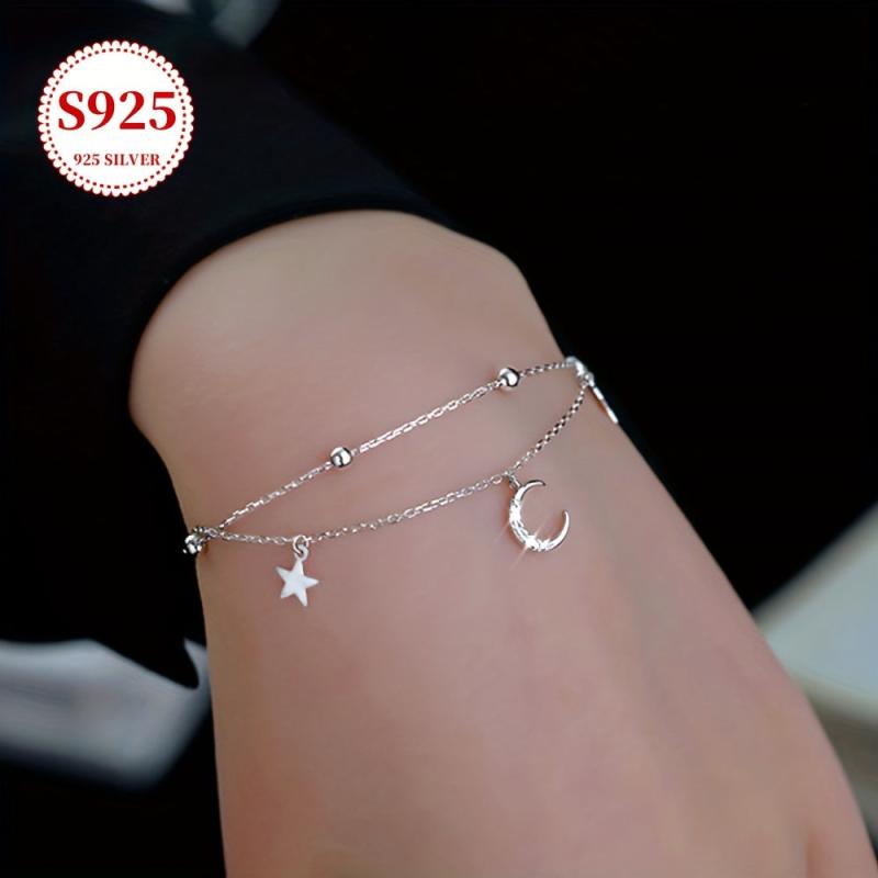 This stunning bracelet features a double layer design with star and moon pendants, blending bohemian and hip hop styles. It is perfect for both daily wear and parties, adding a touch of elegance to any outfit.