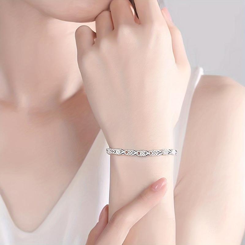 This elegant bracelet features a silvery leaf design, perfect for daily casual wear. It makes a versatile gift for your girlfriend on her birthday or Christmas.