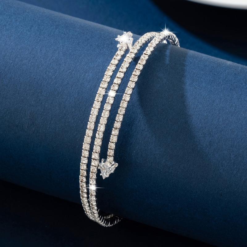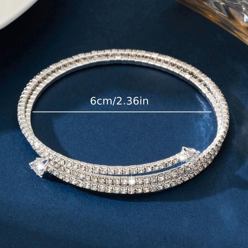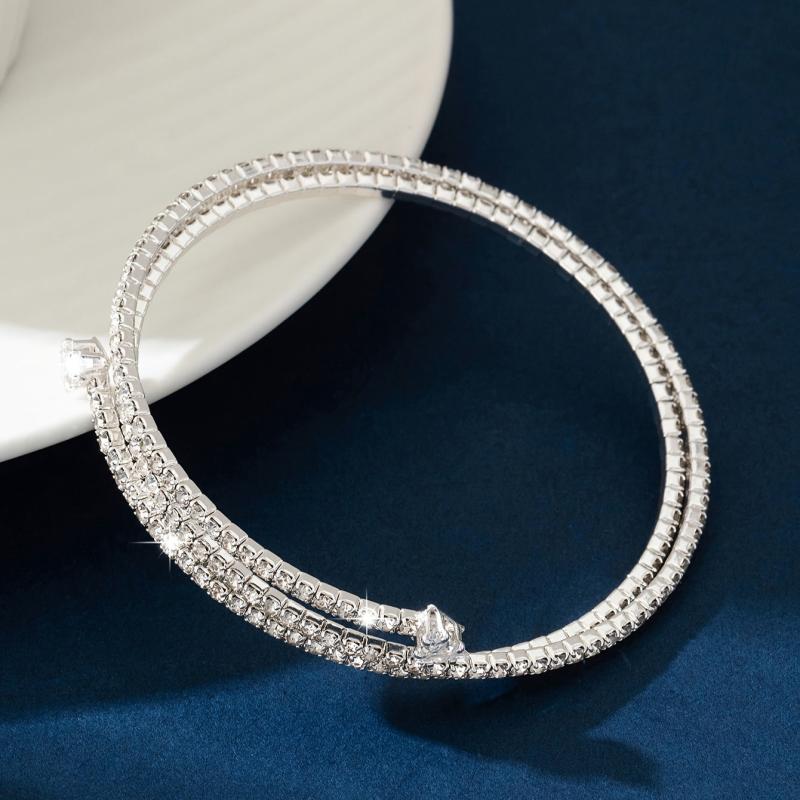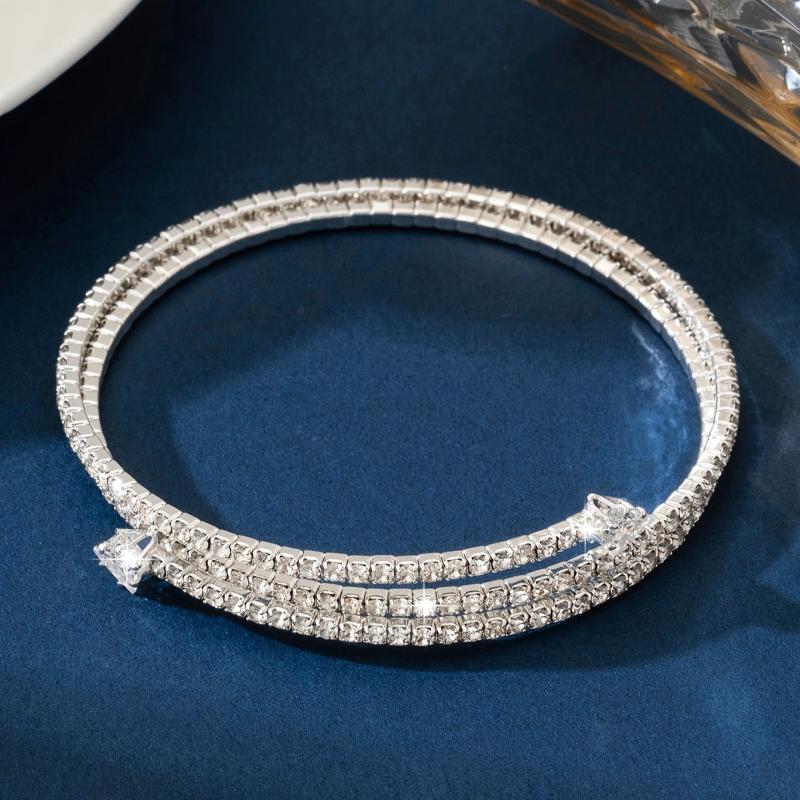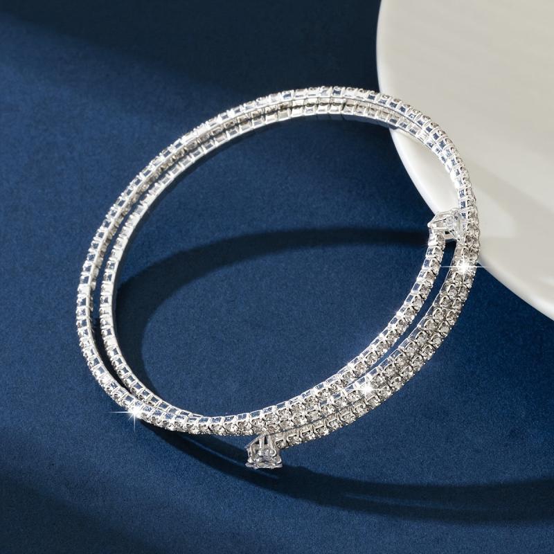 This elegant bracelet is perfect for daily wear or parties. The silvery plated design with rhinestones adds a touch of sparkle to any outfit.