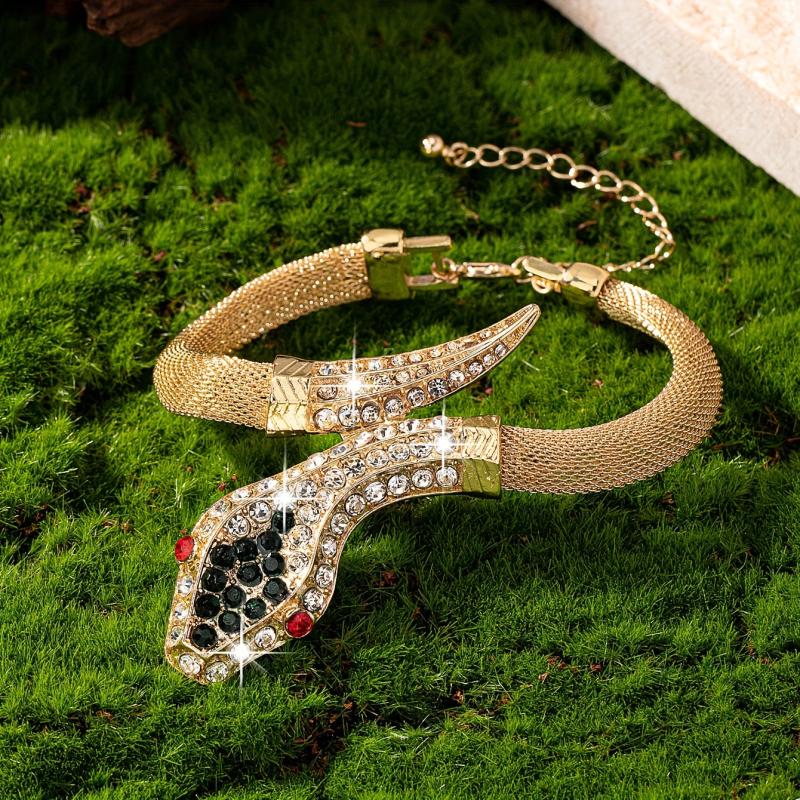 Elegant snake bracelet made of zinc alloy with rhinestone encrusted design. Perfect for daily wear or as a thoughtful gift for snake jewelry enthusiasts.