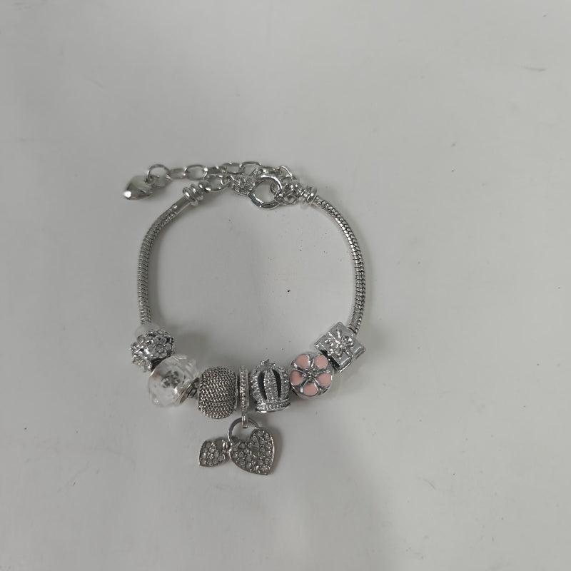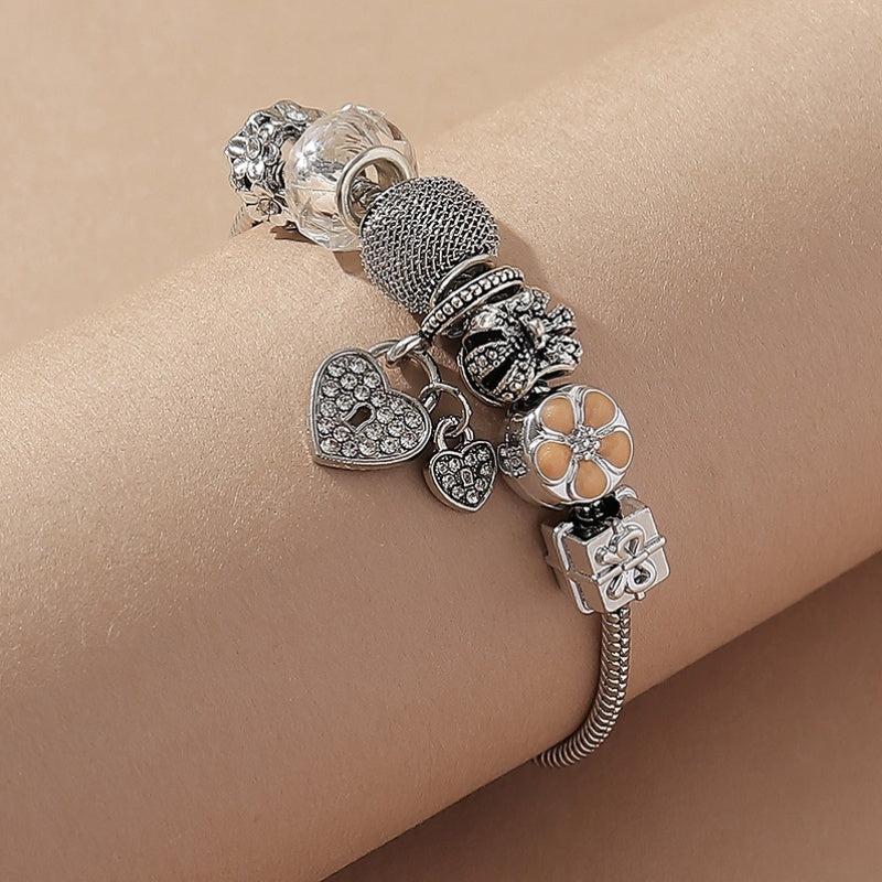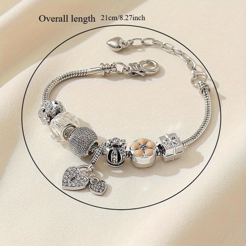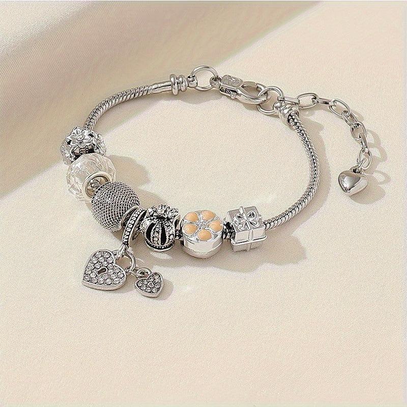 Create your own stylish look with this DIY beaded bracelet featuring a crown and heart lock charm adorned with sparkling diamonds. Perfect for everyday wear or special occasions.