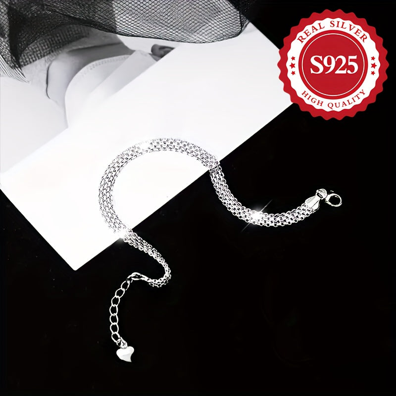 This elegant mesh bracelet is made of S925 silver, perfect for parties and gatherings. Weighing only 3.8g, it is lightweight and comfortable to wear.