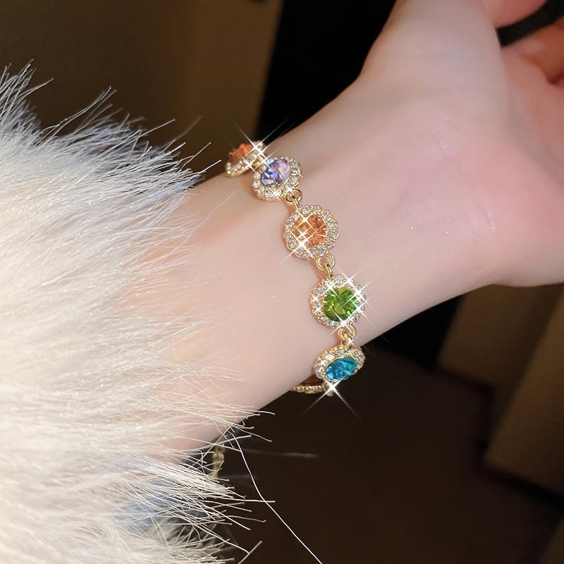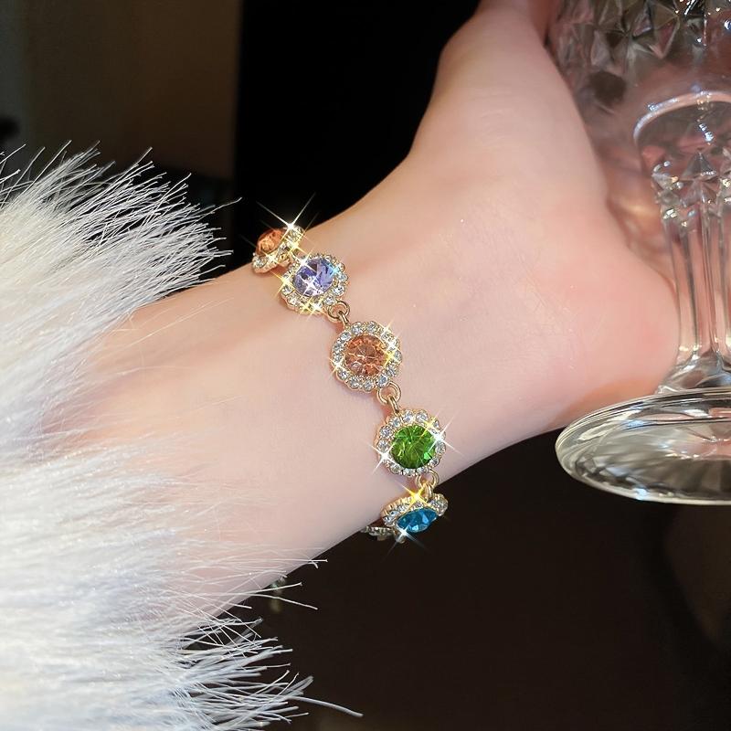 Elegant zinc alloy bracelet featuring sparkling round rhinestones, perfect for weddings or special occasions.
