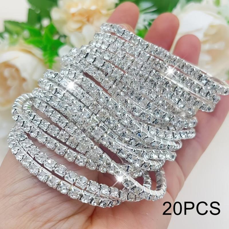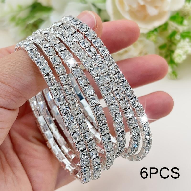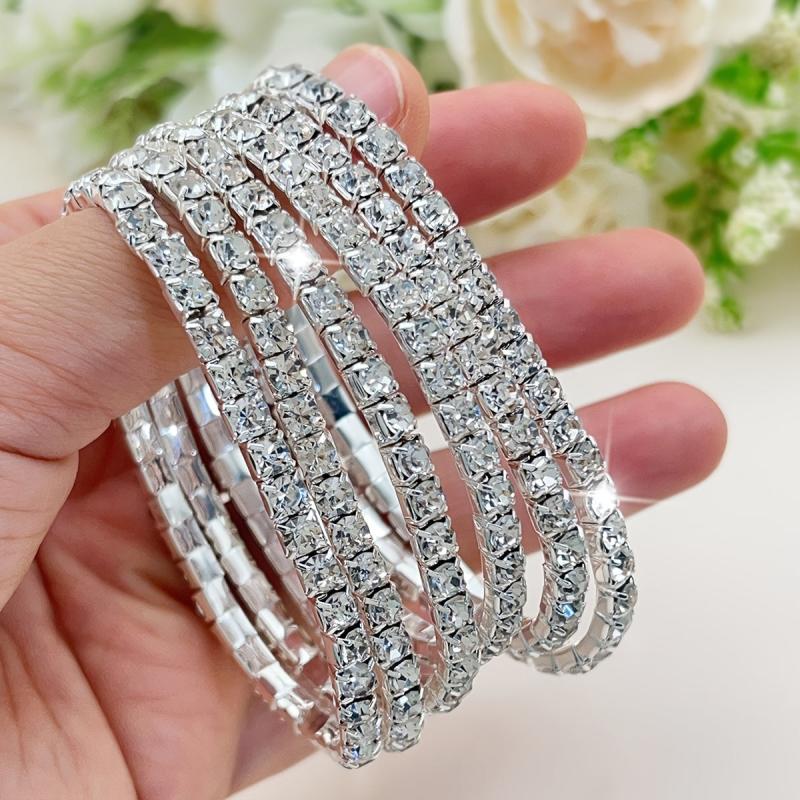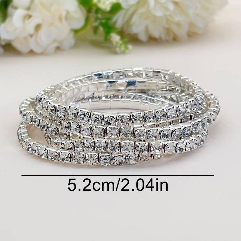 Add glamour to your look with this dazzling bangle set featuring multiple strips of sparkling rhinestones. Perfect for weddings, parties, nightclubs, and fashion events.
