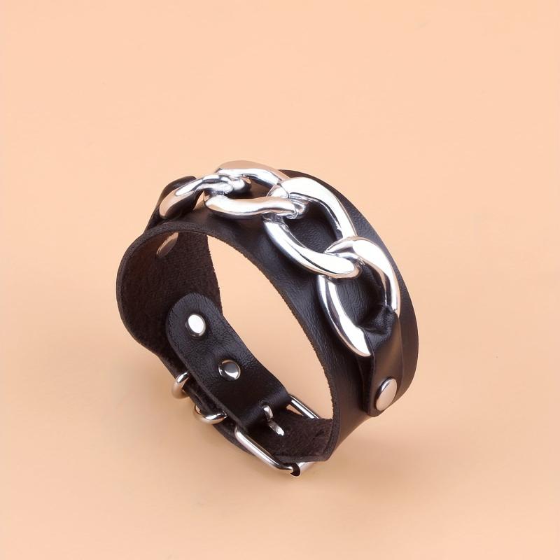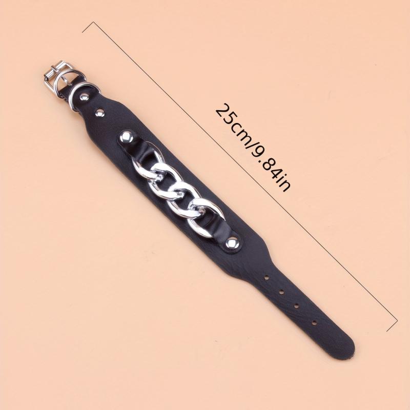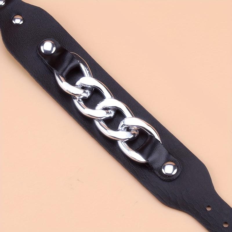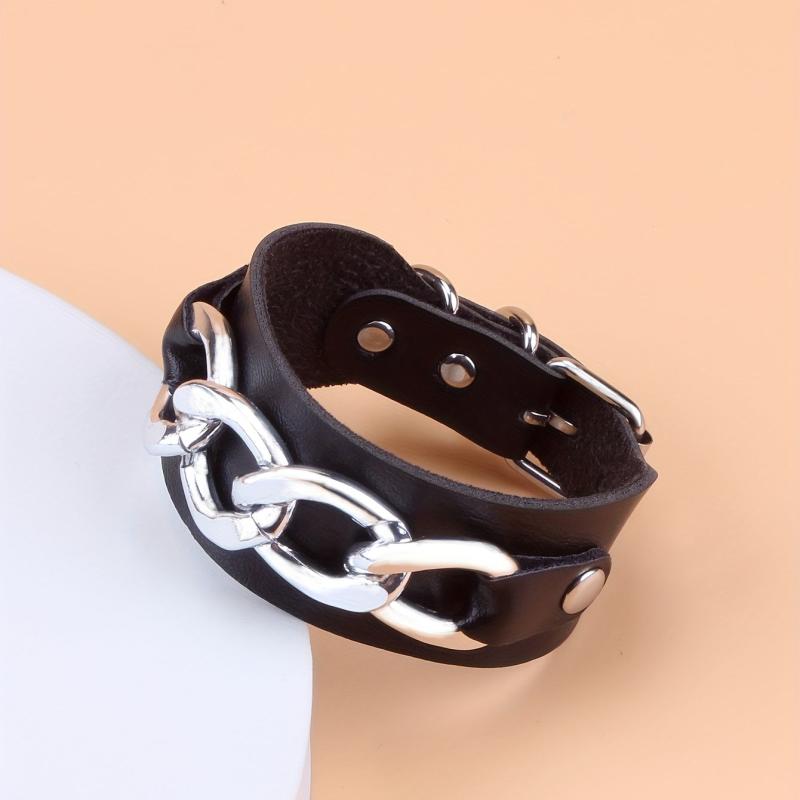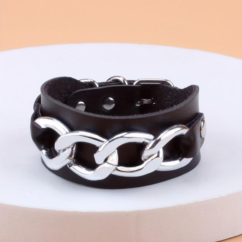 This splicing chain PU leather bracelet is a stylish accessory suitable for both men and women. Perfect for parties and casual wear.
