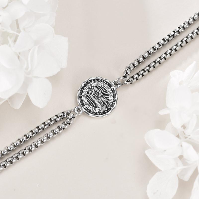 This Saint Peregrine bracelet is a beautiful piece of religious jewelry that serves as a protective amulet. It is a wonderful gift for both women and men.