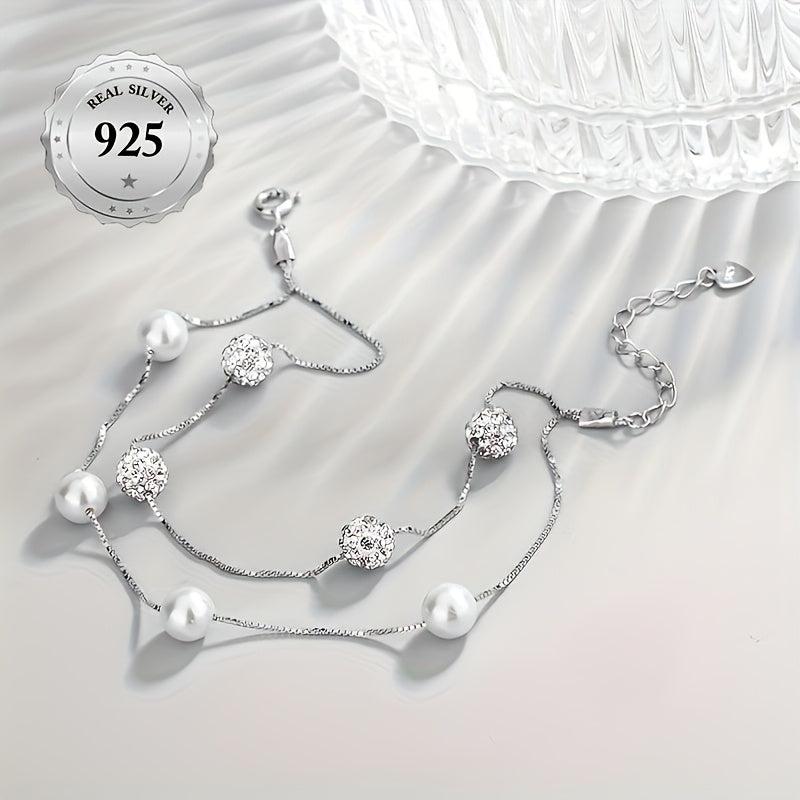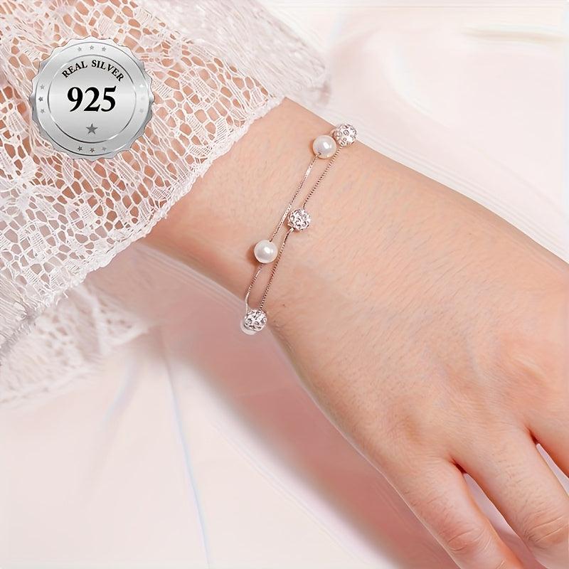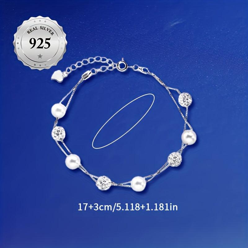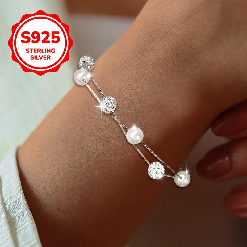 Elevate your accessory game with this trendy bracelet featuring a stunning combination of Japanese design, bling bling elements, and S925 silver. The synthetic cubic zirconia and lustrous shell pearls make it perfect for adding a touch of elegance to your outfit.