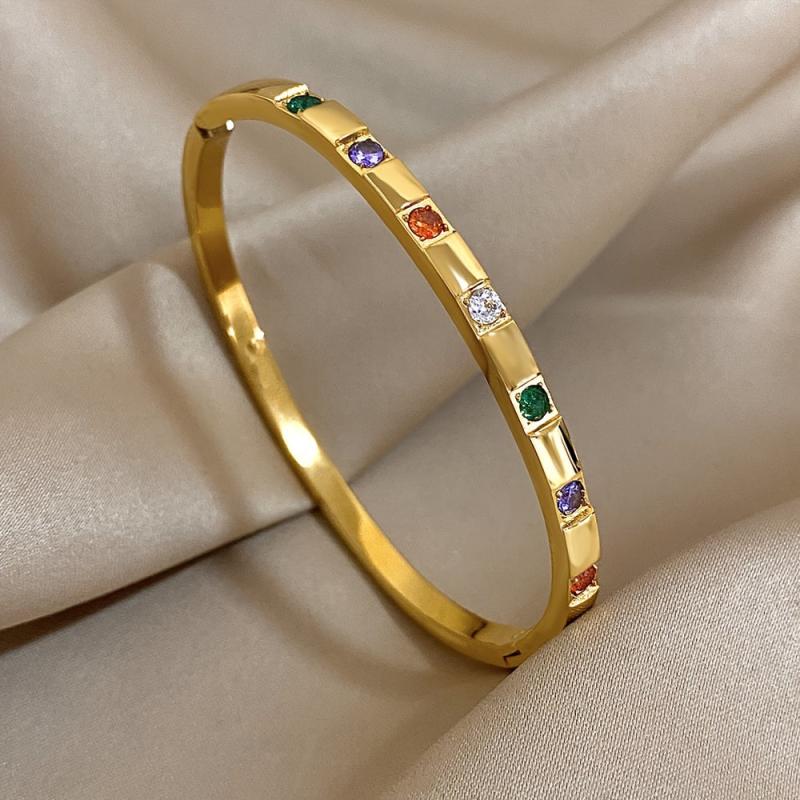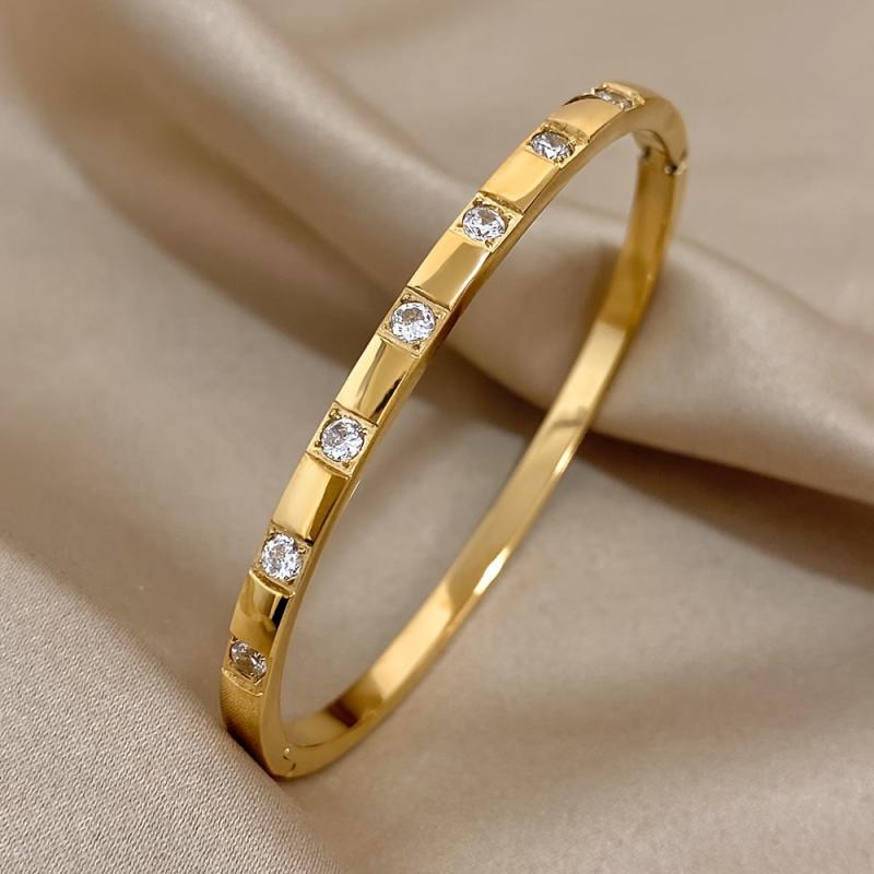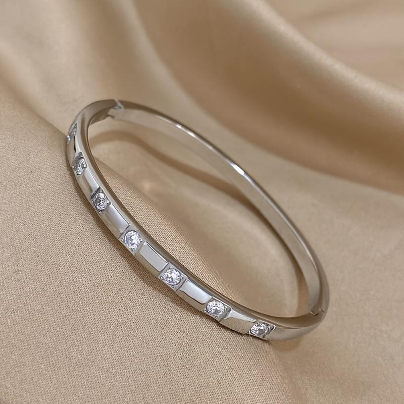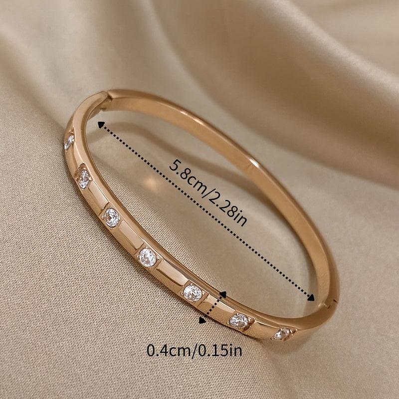 Rose Golden 1pc Stainless Steel Bracelet with Rhinestones, perfect as a gift for family, loved ones, and friends.