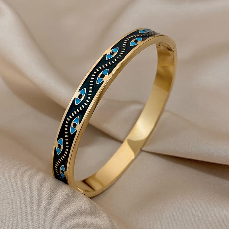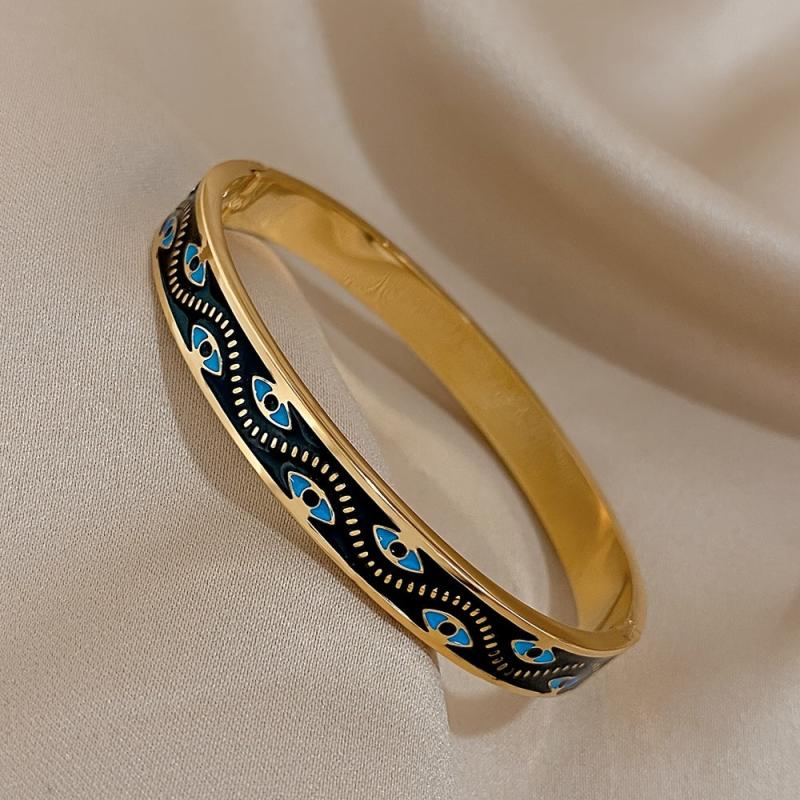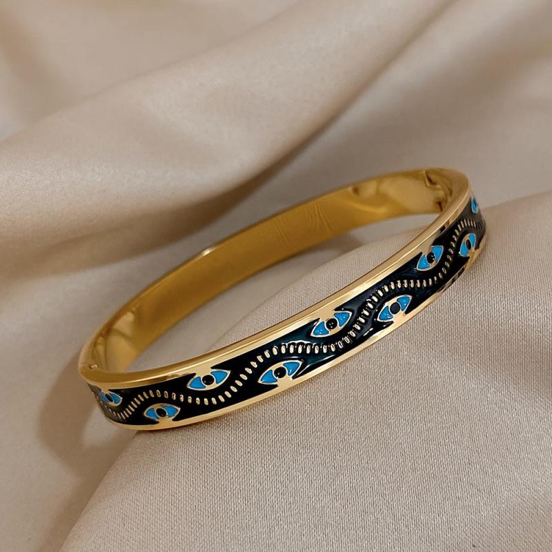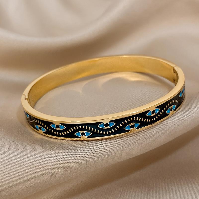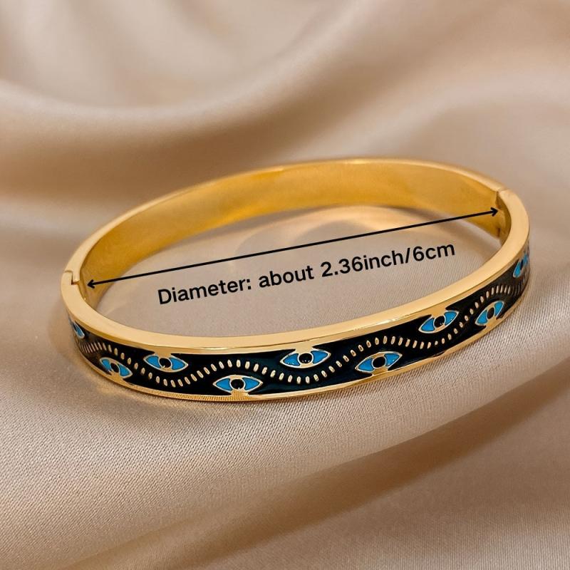 This stylish stainless steel bracelet features a lucky eyes pattern design. It is made of high-quality enamel for durability and has a sleek finish.