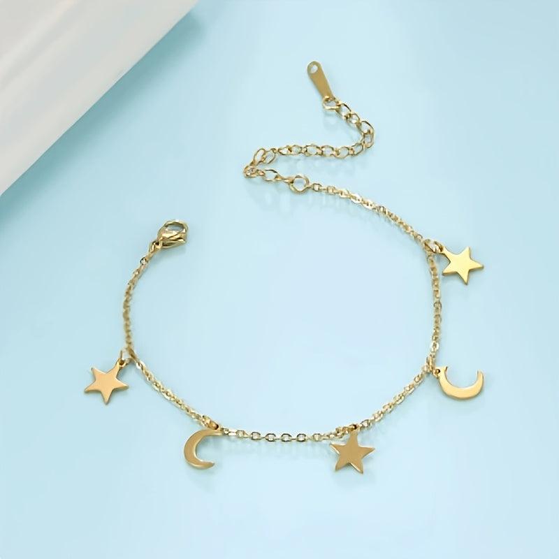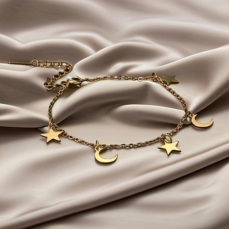 Elevate your summer look with this charming ankle bracelet featuring stars and moons. Perfect for casual and formal occasions, it's a must-have accessory for your beach vacations.