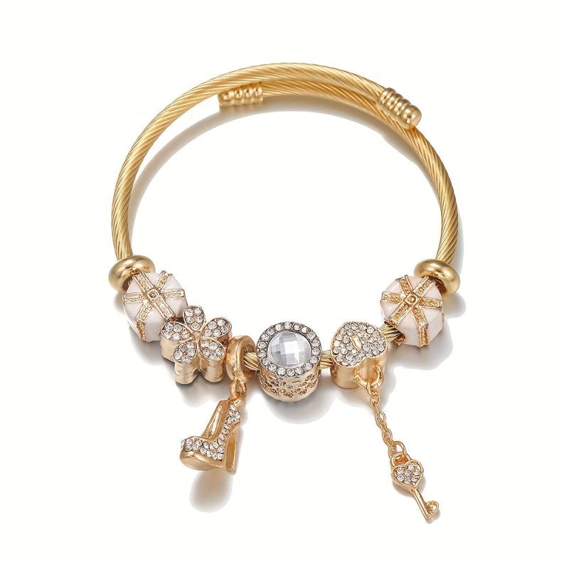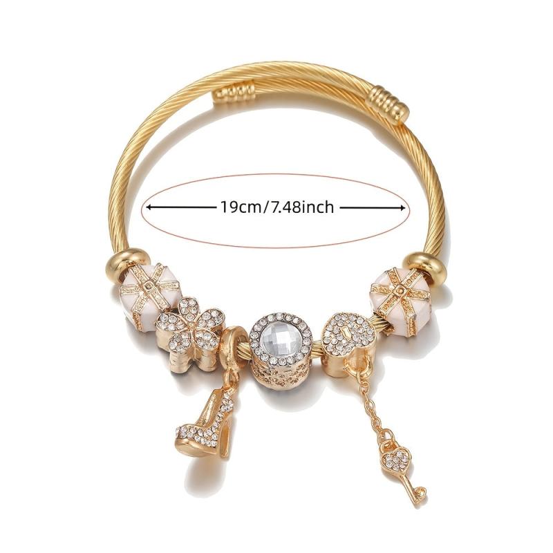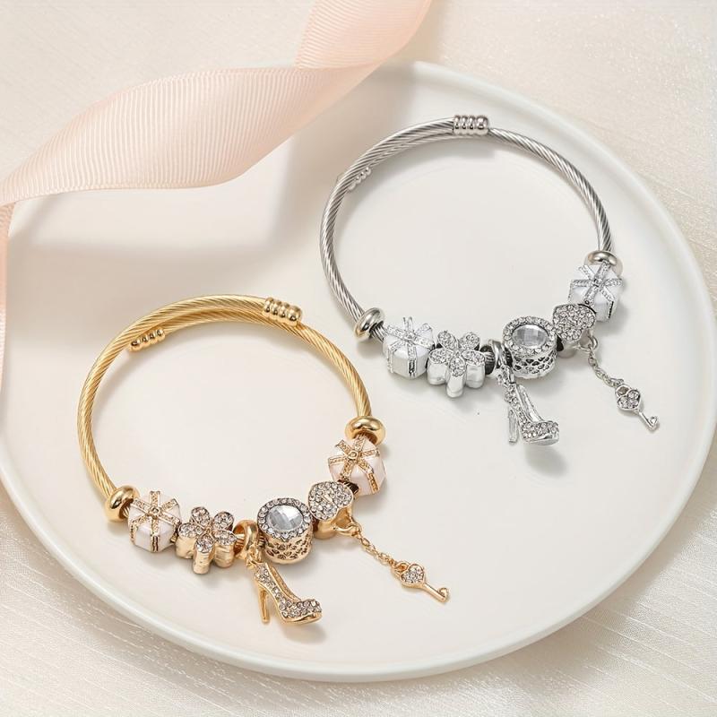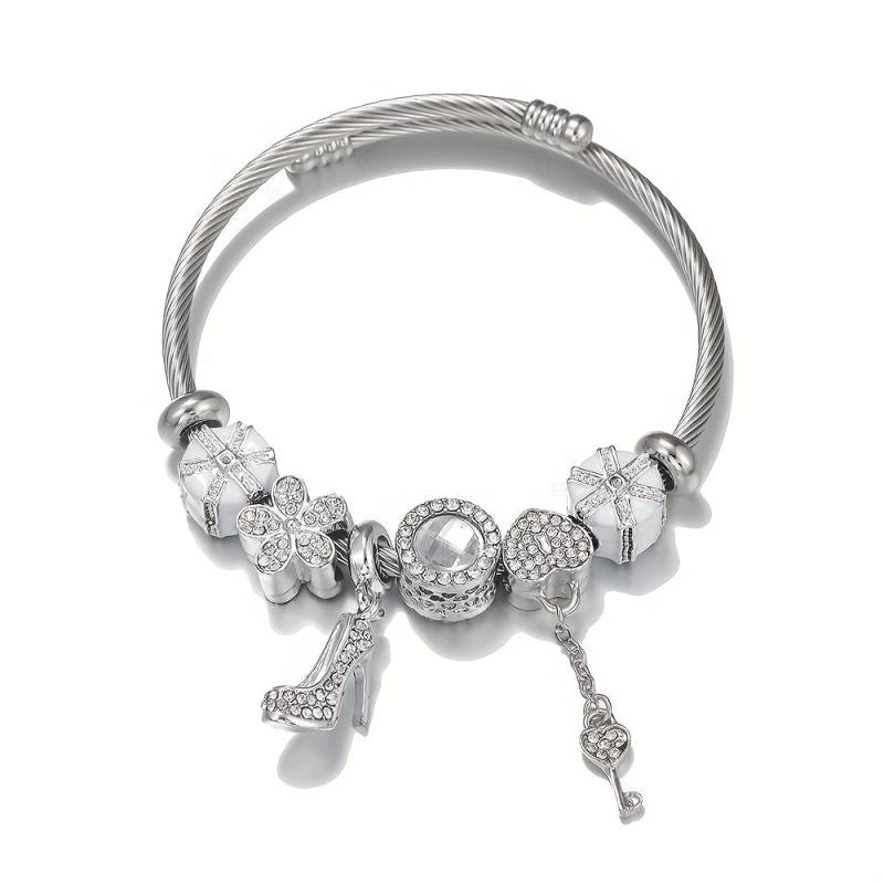 Elegant and light bracelet featuring high heel heart lock charm. Perfect for women's jewelry collection.