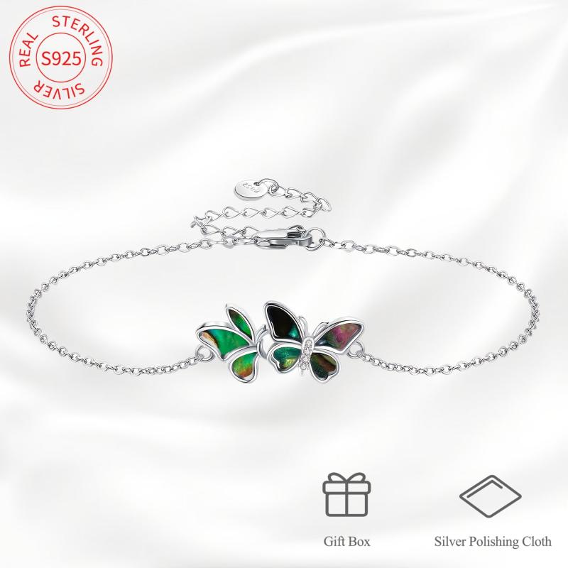 Sterling Silver Abalone Butterfly Bracelet for Women