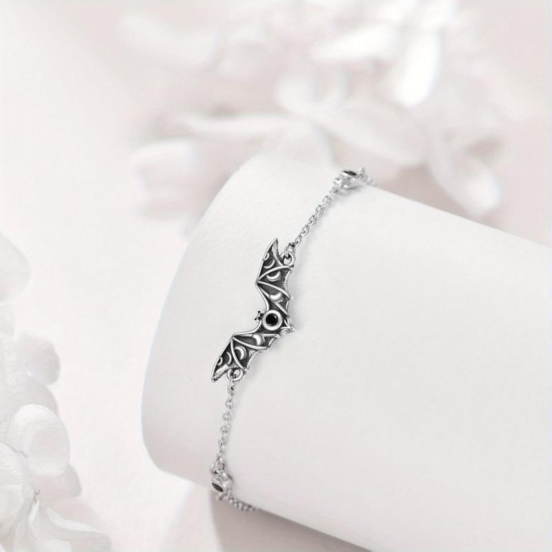 This bat bracelet features a charming bat design, making it perfect for Halloween or gothic-inspired outfits. Crafted in sterling silver, this bracelet is a unique accessory to add to your jewellery collection.