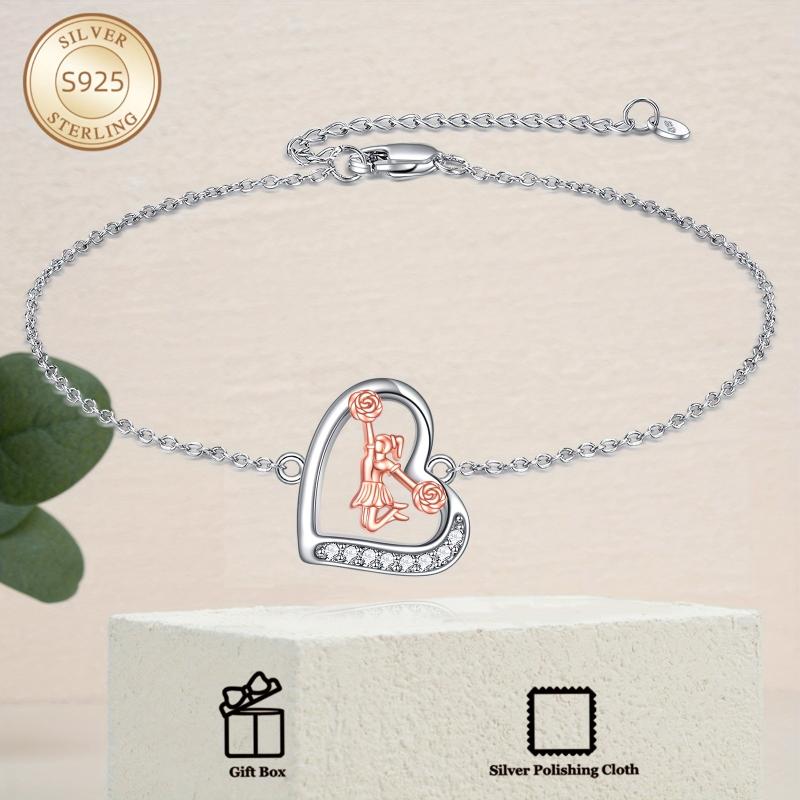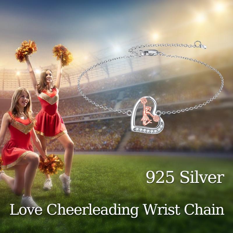 Show your team spirit with this 925 Sterling Silver cheerleading bracelet. A perfect gift for cheerleaders, this heart-shaped sports jewelry is a stylish and meaningful accessory.