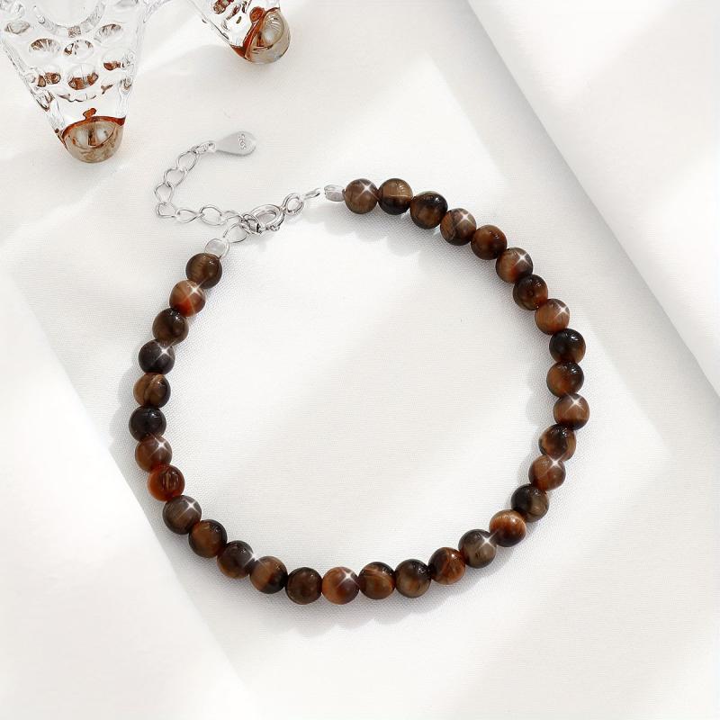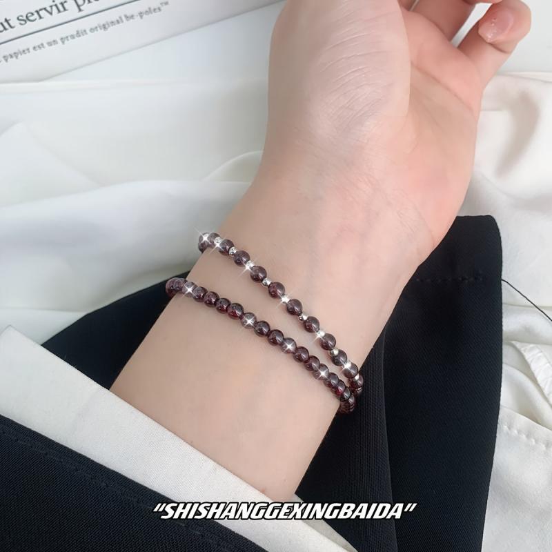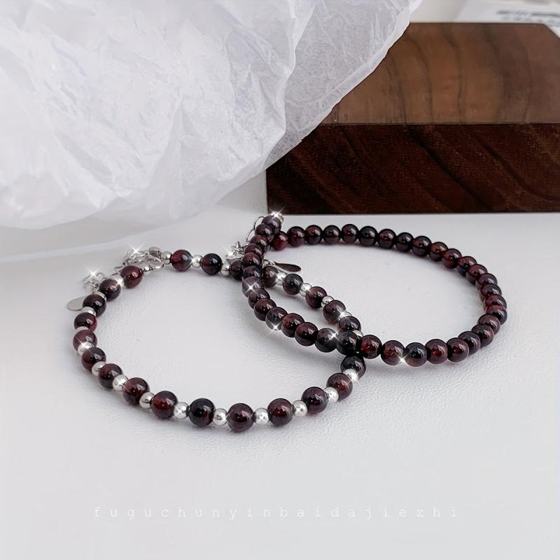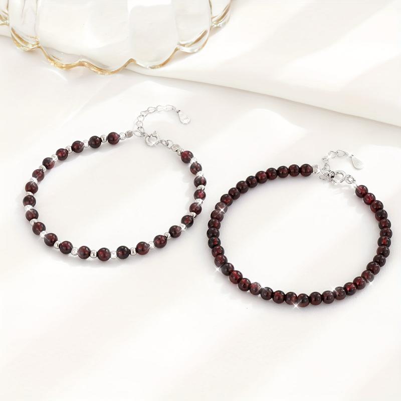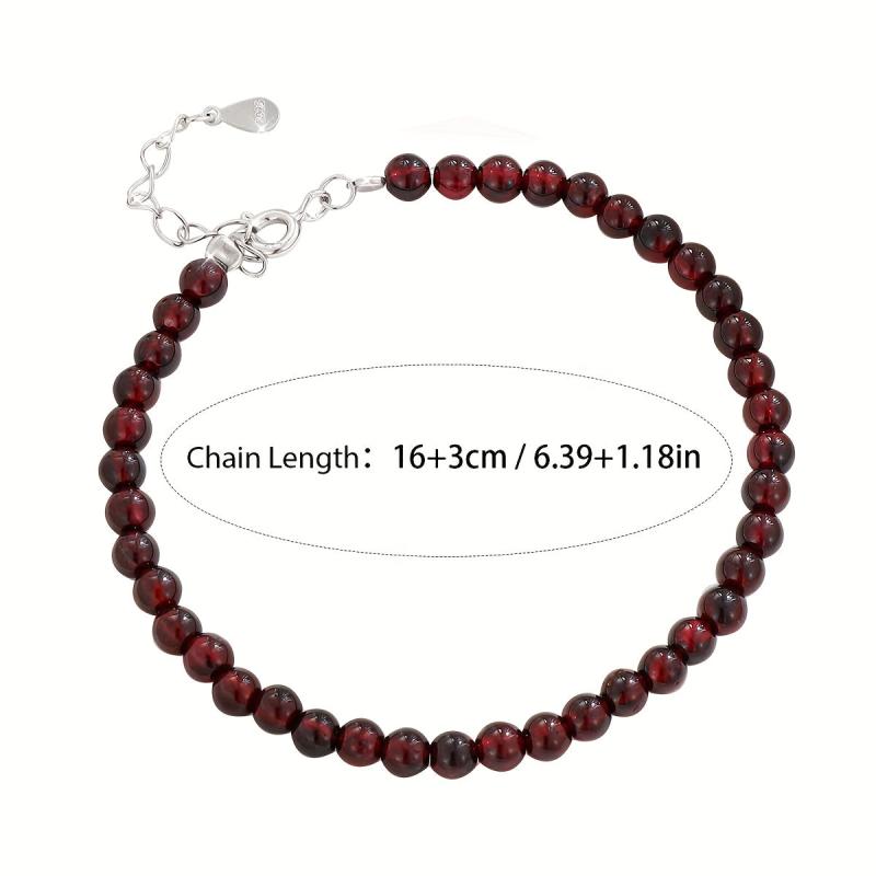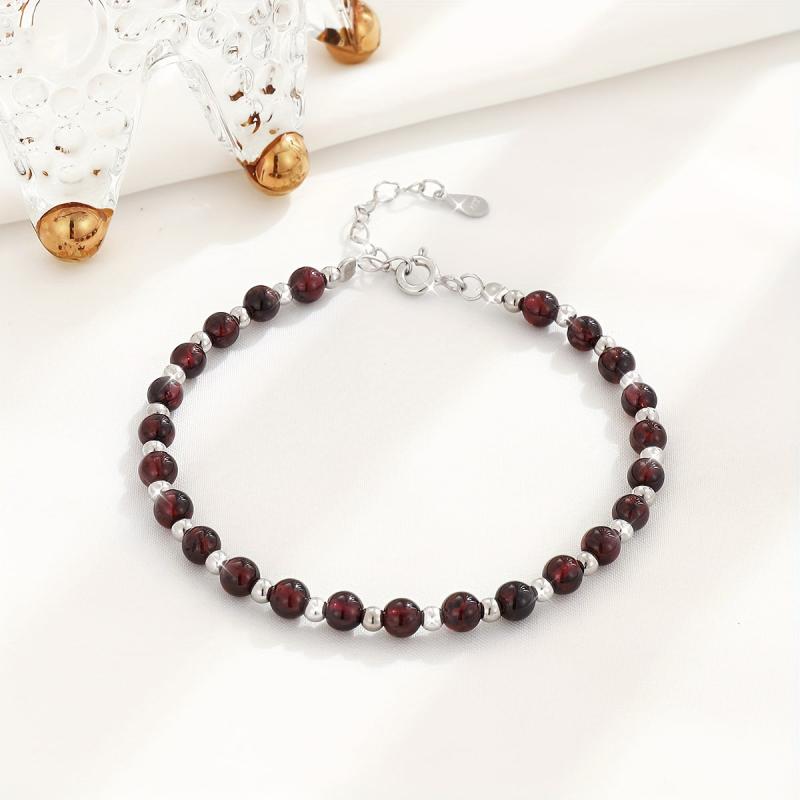 This 925 Sterling Silver Garnet Bead Bracelet features natural round garnet beads in a light and elegant style. Perfect for Valentine's Day & summer parties, it makes an ideal gift.